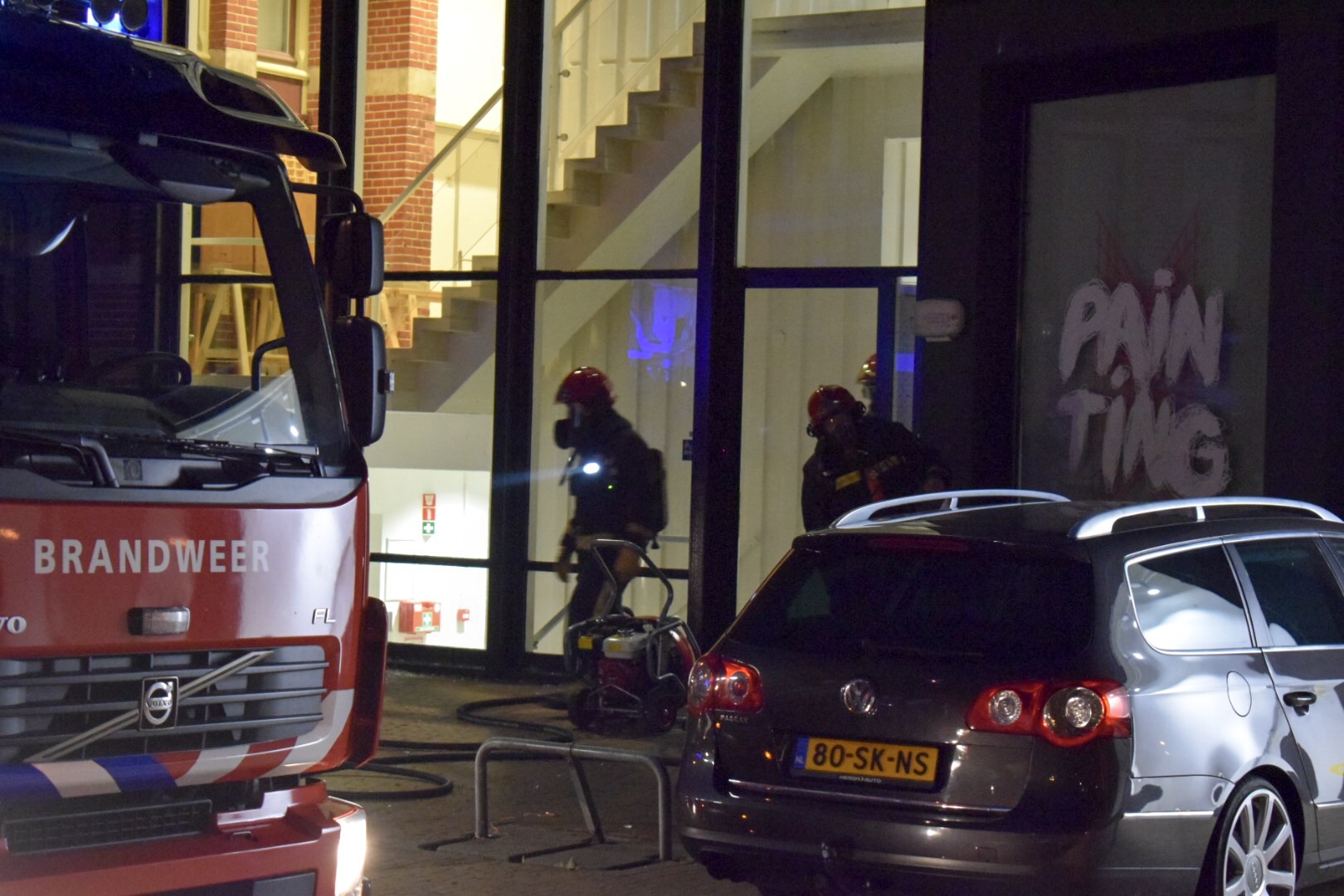 In het pand stonden eindexamenwerken van studenten van Minerva. Het is nog niet duidelijk of die beschadigd zijn geraakt.