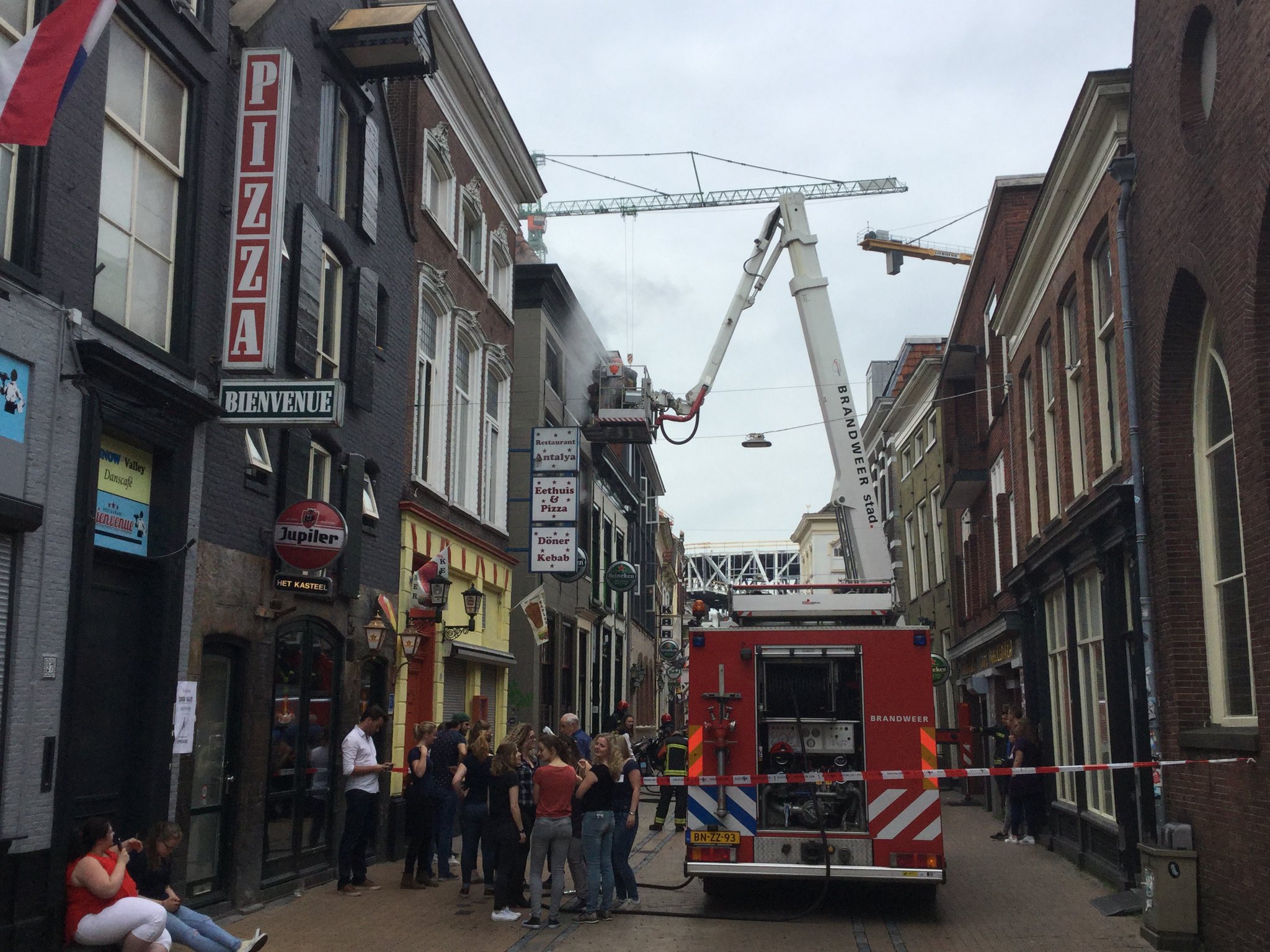 De brandweer heeft de afgelopen week enkele keren geoefend bij studentenvereniging Diskartes in de Peperstraat.
