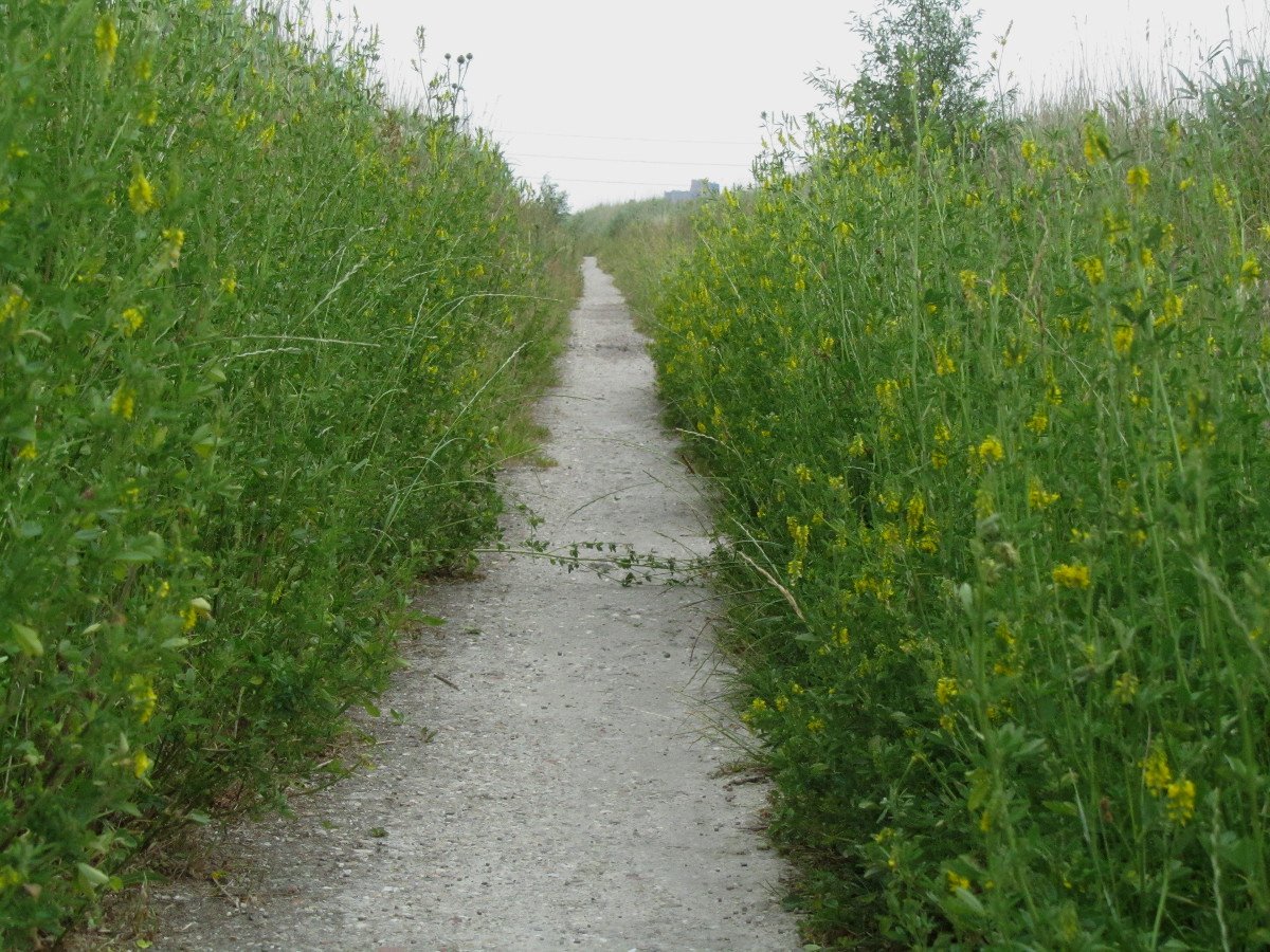 Mooi, als men dit had zijn aankomen dat de plant zich fors uitbreidt had men andere soorten honingklaver kunnen bij zaaien, citroengele, goudgele, witte honingklaver. Vlak langs het pad kleine honingklaver, dat scheelt in de maaikosten en in de biodiversiteit.