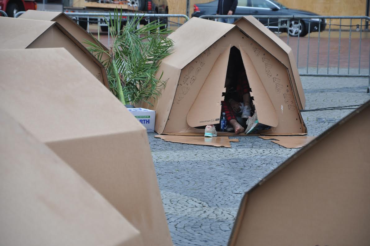 Slechts twee mensen hebben de nacht van vrijdag op zaterdag doorgebracht in één van de twintig kartonnen tenten die op de Grote Markt staan. De organisatie had op meer gerekend.
