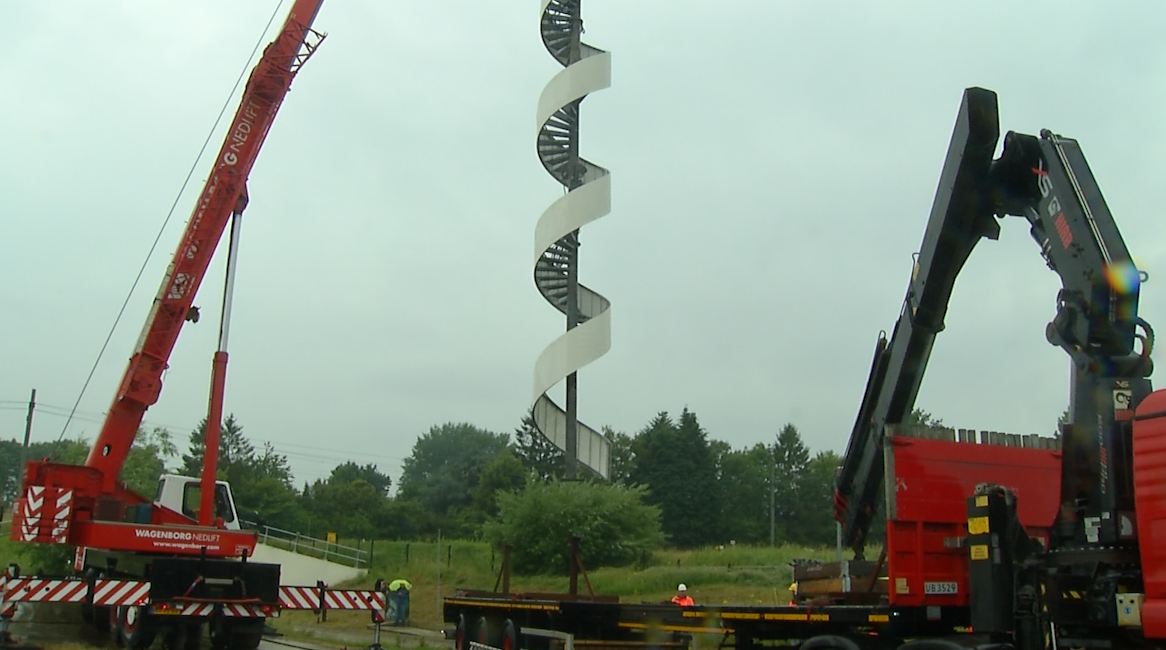 Vanwege de vergroting van het rangeerterrein in de nabije toekomst kreeg de stadsmarkering een nieuwe plek, naar het noorden. Maar beklimmen van de toren is niet echt de bedoeling, de onderste drie meters zijn traploos.