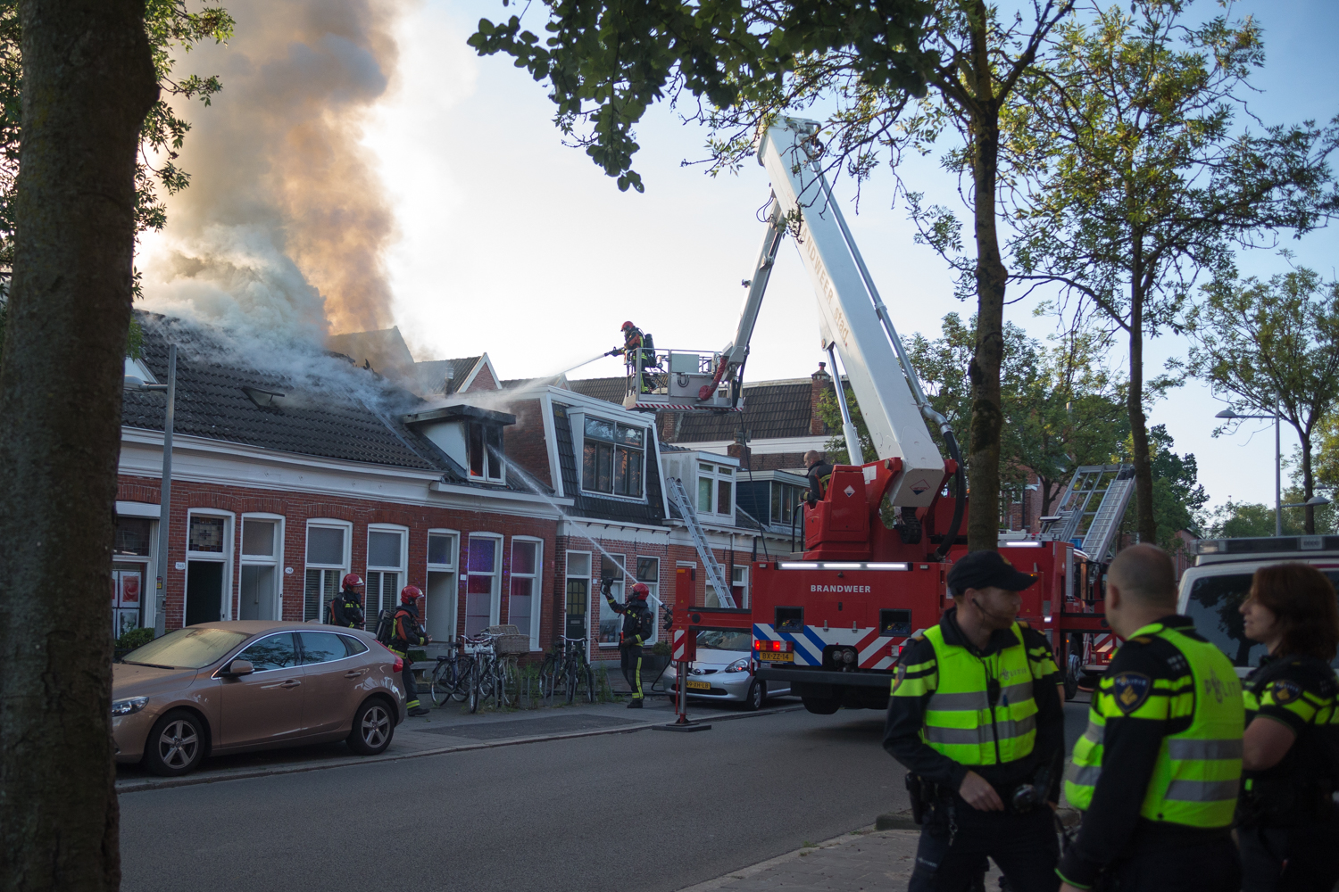 In een woning aan de Meeuwerderweg is zondagochtend tegen zessen brand uitgebroken. De vlammen sloegen uit het dak, waarna de brand zich uitbreidde over de twee naastgelegen woningen.