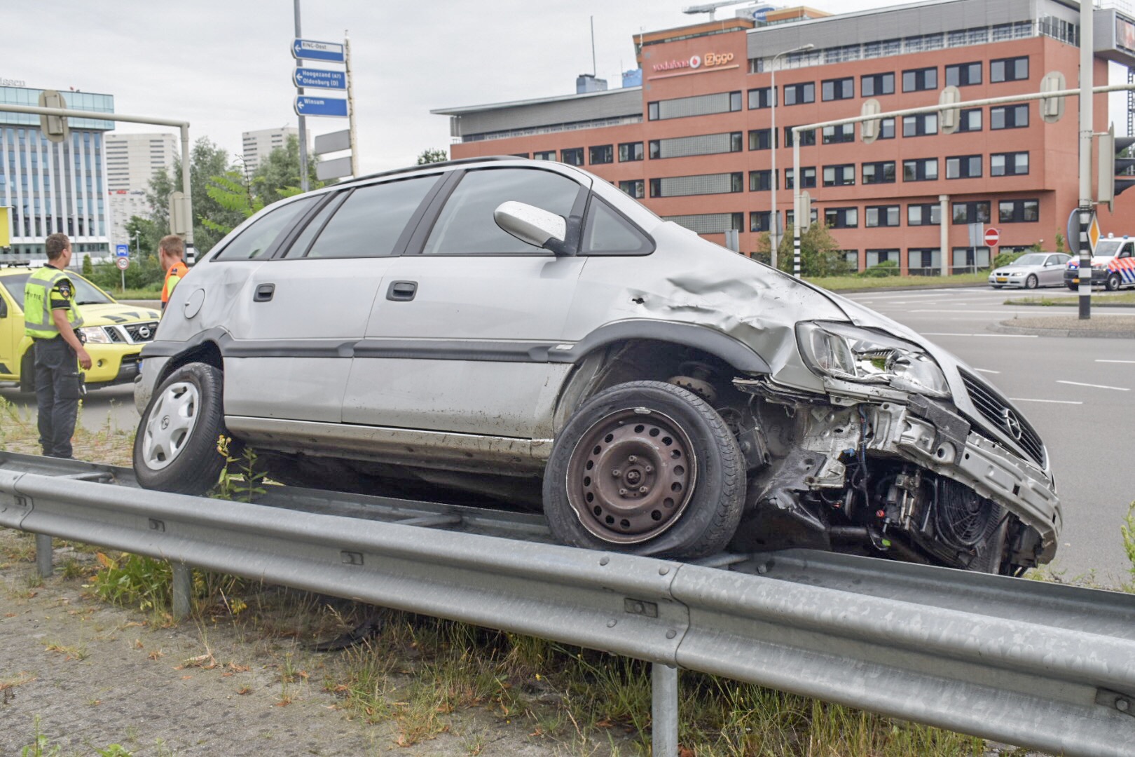 Op de Europaweg in de stad is dinsdag tijdens de avondspits een auto op de vangrail beland.