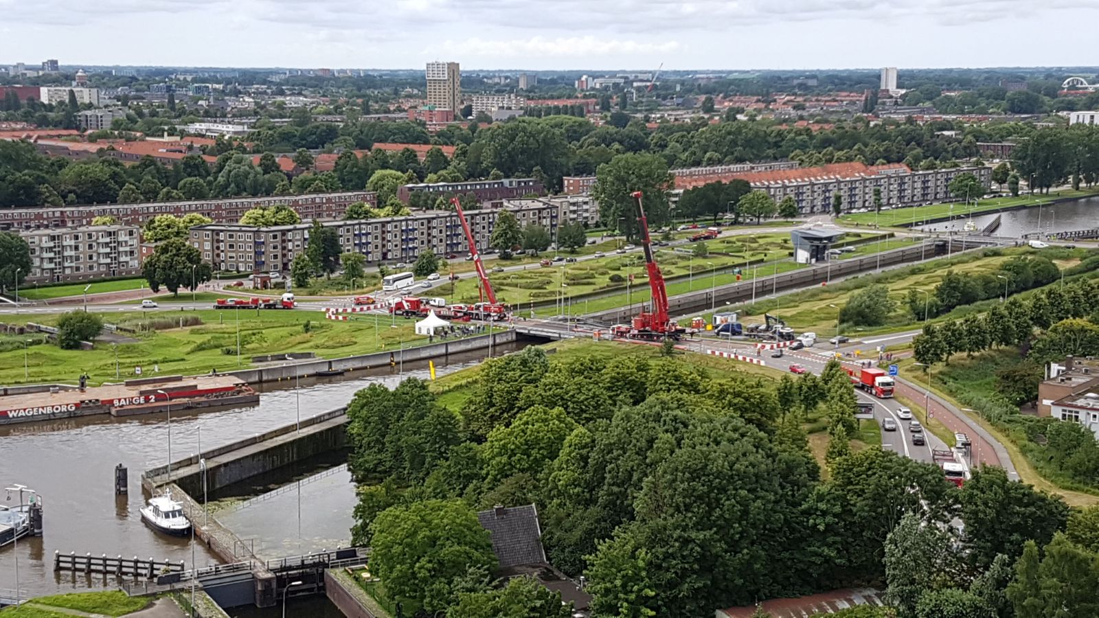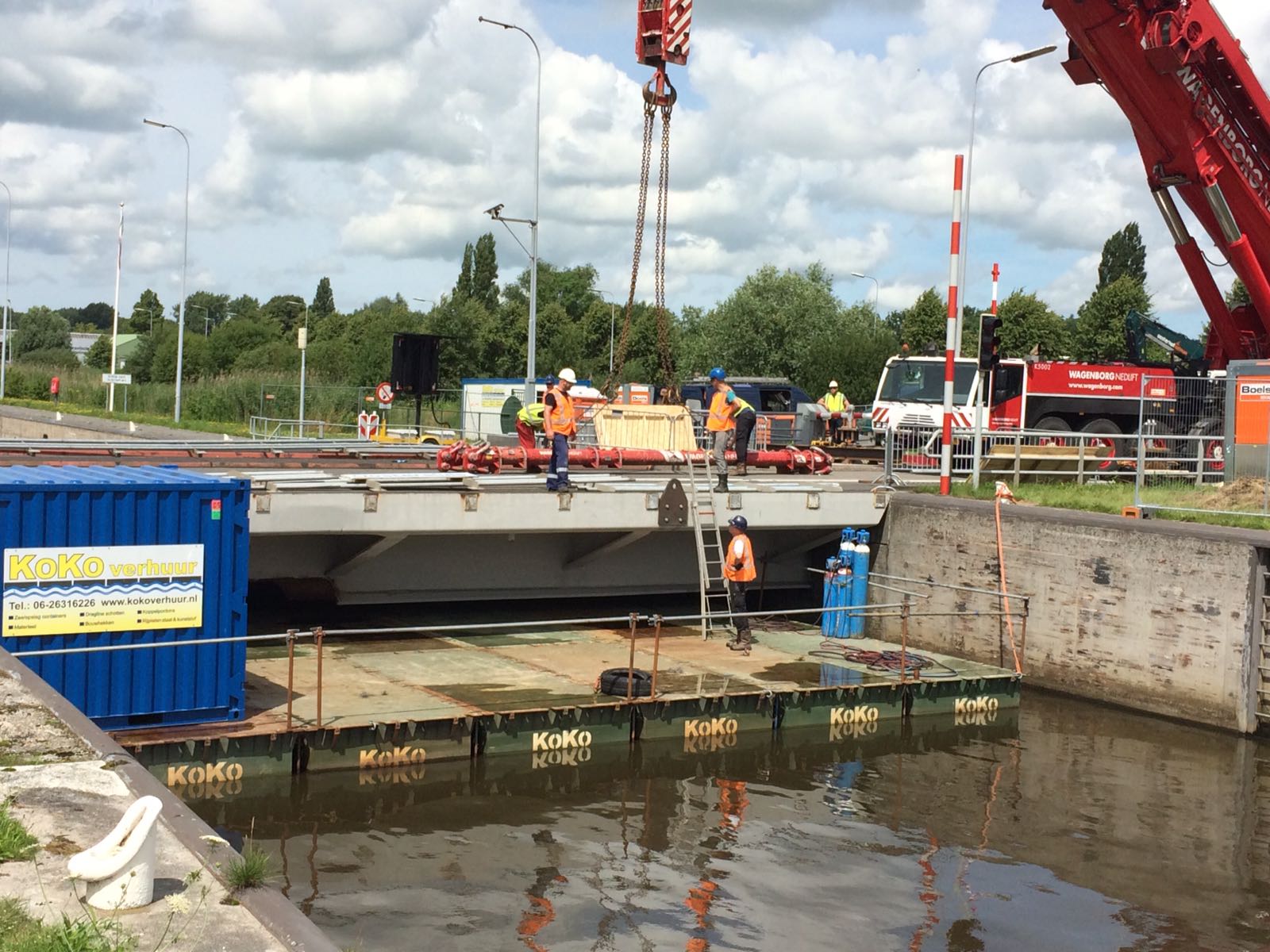De zuidelijke Oostersluisbrug is zaterdagmiddag met groot materieel verwijderd. De brug werd vorig jaar zomer aangevaren door een binnenvaartschip en raakte daarbij beschadigd.
