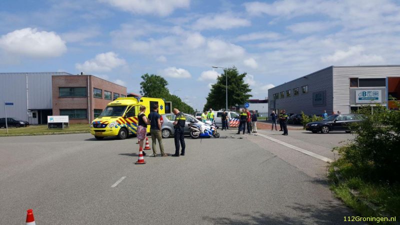 Een motorrijder is woensdagmiddag gewond geraakt bij een aanrijding met een auto op de kruising Kattegat – Verlengde Bremenweg. De aard van zijn verwondingen is onbekend.