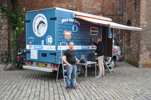 Nathalie die werkzaam is bij de Globe schrijft een bericht op de wagen. “Er staat sterkte. Dat zullen ze wel nodig hebben tijdens zo’n lange tocht. Ik ken de mannen uit het Buddyhuis voor ex-daklozen”.