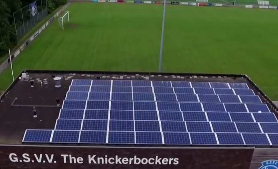 Op het dak van Appleknockers Flophouse, het clubhuis van studentenvoetbalvereniging The Knickerbockers, zijn onlangs 64 zonnepanelen geplaatst.