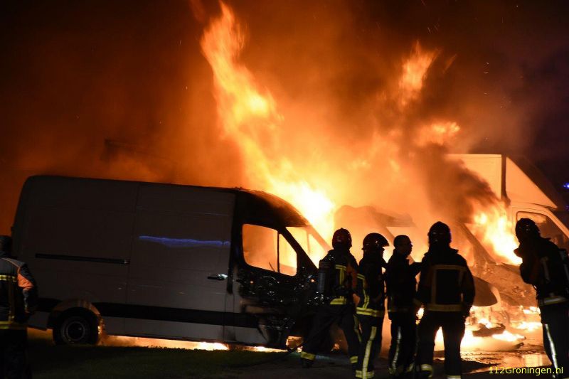 De bestelbusjes zijn zondagmiddag door een bergingsbedrijf weggesleept. “De gemeente Groningen heeft er inmiddels voor gezorgd dat het parkeerterrein weer netjes is, en ook in de loods hebben we inmiddels de brandgeur kunnen verdrijven.”