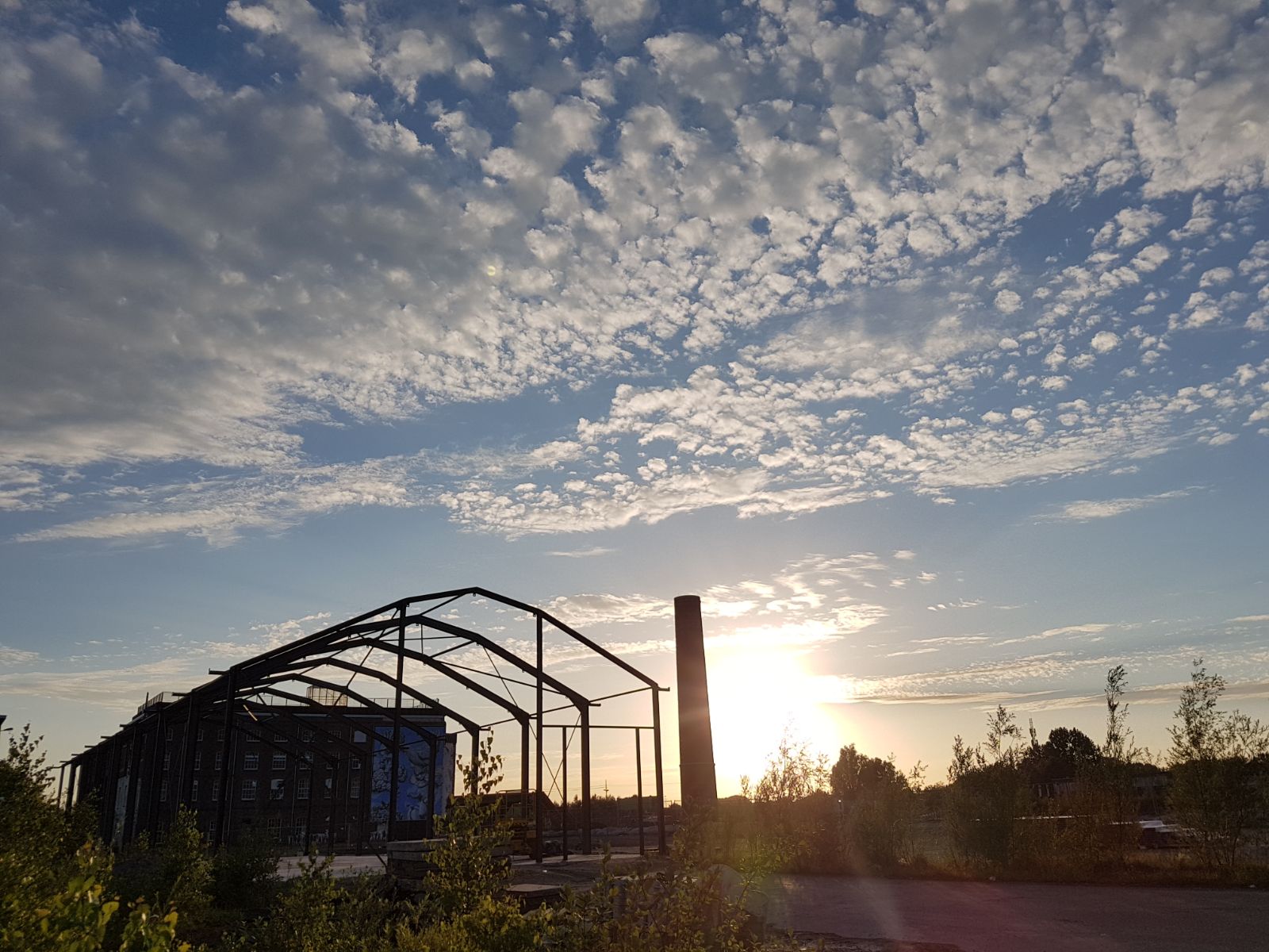 De bouw van het nieuwe podium EM2 op het Suikerunieterrein heeft het hoogste punt bereikt. Het geraamte van staal is nu klaar. Hierna wordt snel begonnen met het plaatsen van muren bestaande uit strobalen, houten planken op de voorgevel en het dak.