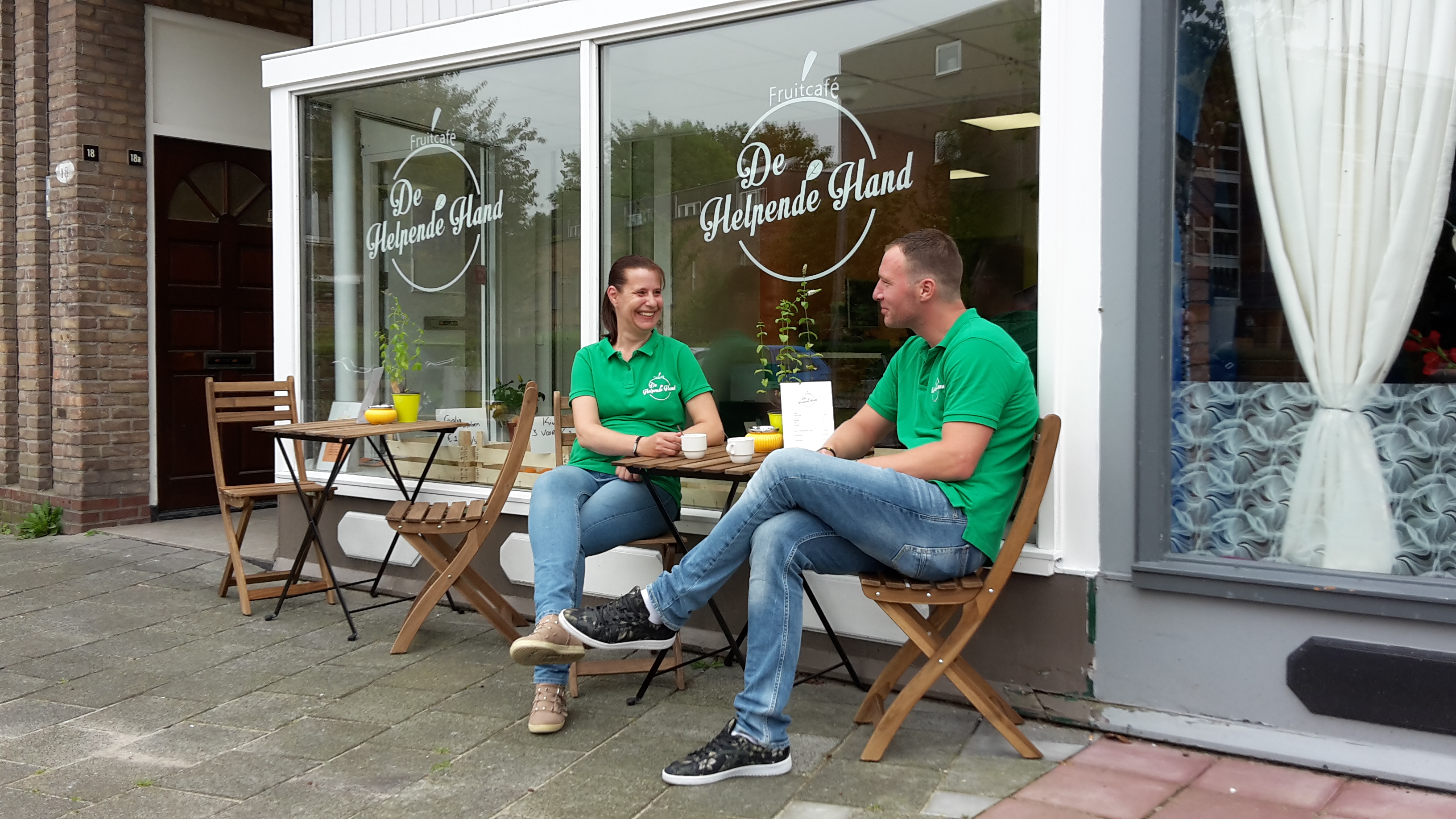 “Wij hebben een echte buurtfunctie want we zijn naast een groente- en fruitwinkel ook een plek waar mensen met allerlei vragen terecht kunnen. En we hebben heerlijke appelroosjes, koffie, smoothies en fruitsappen”, zegt Martin Starkenburg van het Fruitcafé.
