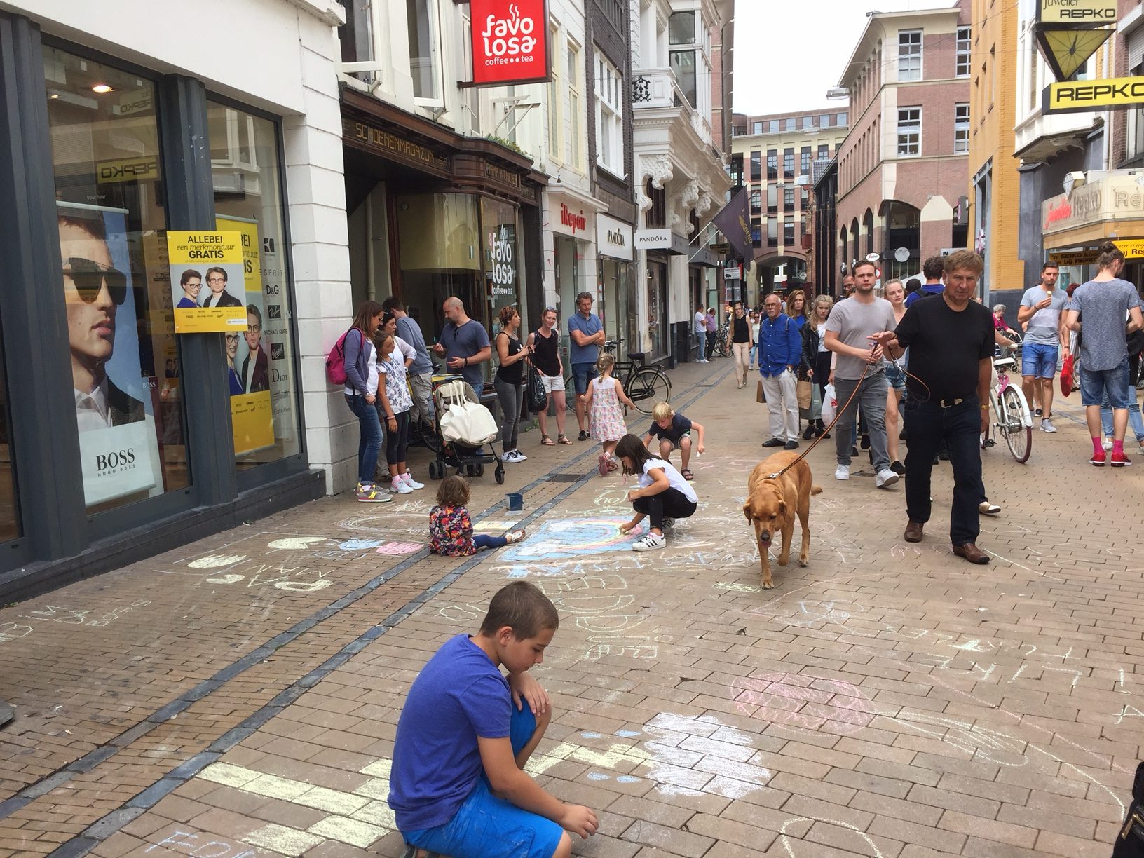 In de Herestraat, Zwanestraat, Waagplein en op de Vismarkt konden de kinderen stoepkrijten en knutselen. Zomerstad is een gratis zomerprogramma speciaal voor gezinnen met kinderen die niet op vakantie zijn.