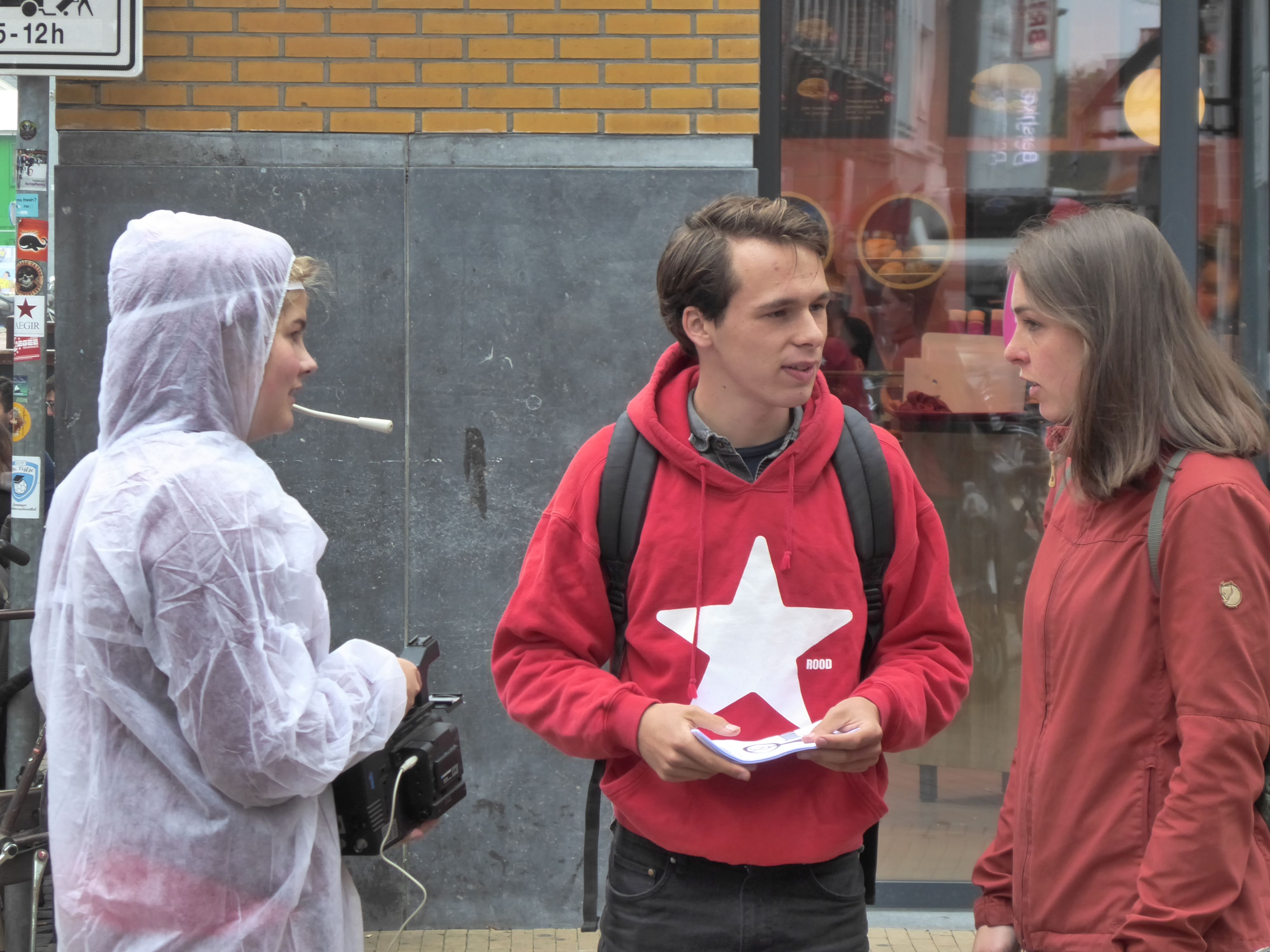 Activisten van ROOD verzamelden woensdag op de Grote Markt handtekeningen tegen de zogenoemde Sleepnetwet. Verkleed als geheim agenten met afluisterapparatuur waarschuwden zij de Stadjers voor de nieuwe afluisterwet.