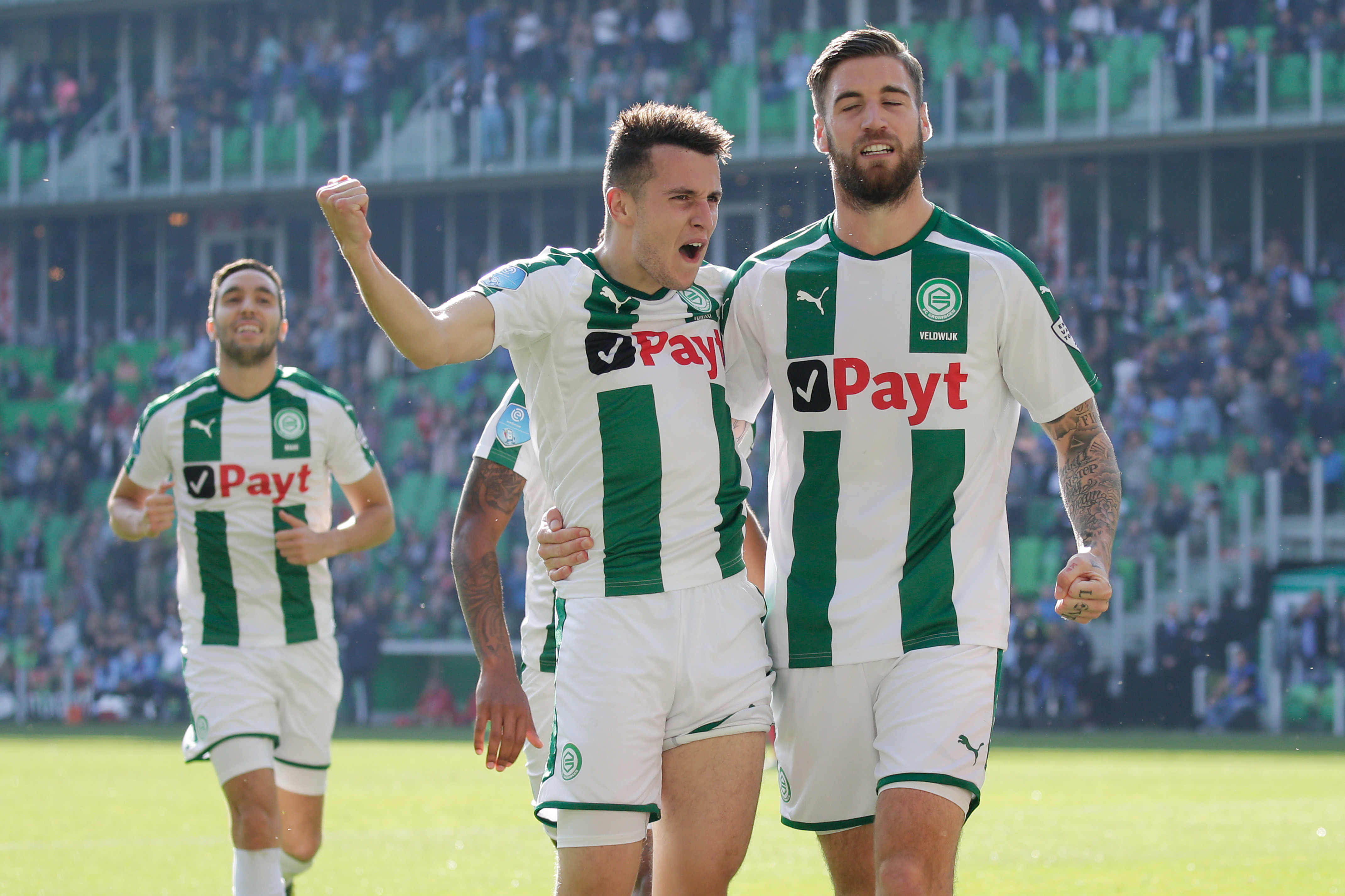 Foto: Sportphotoagency.com FC Groningen viert de 1-0 tegen FC Twente.