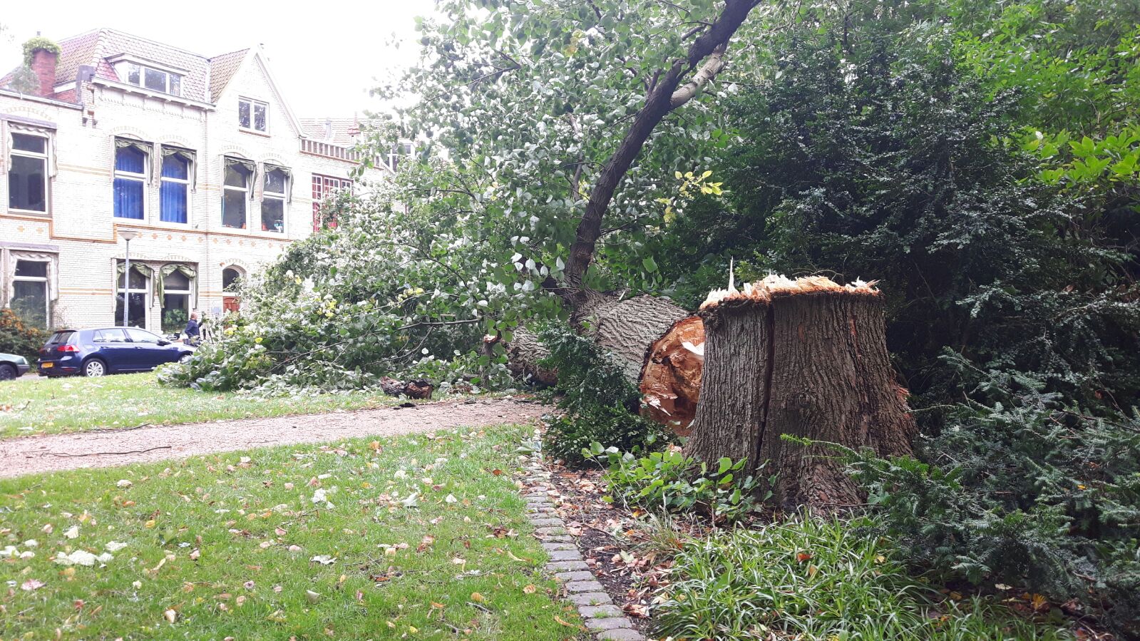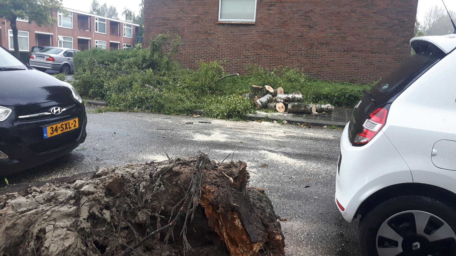 11.32: Aan de Werfstraat, nabij het Noorderplantsoen en Noorderhaven is zojuist ook een boom omgewaaid. Voor zover bekend heeft ook deze boom geen schade veroorzaakt.