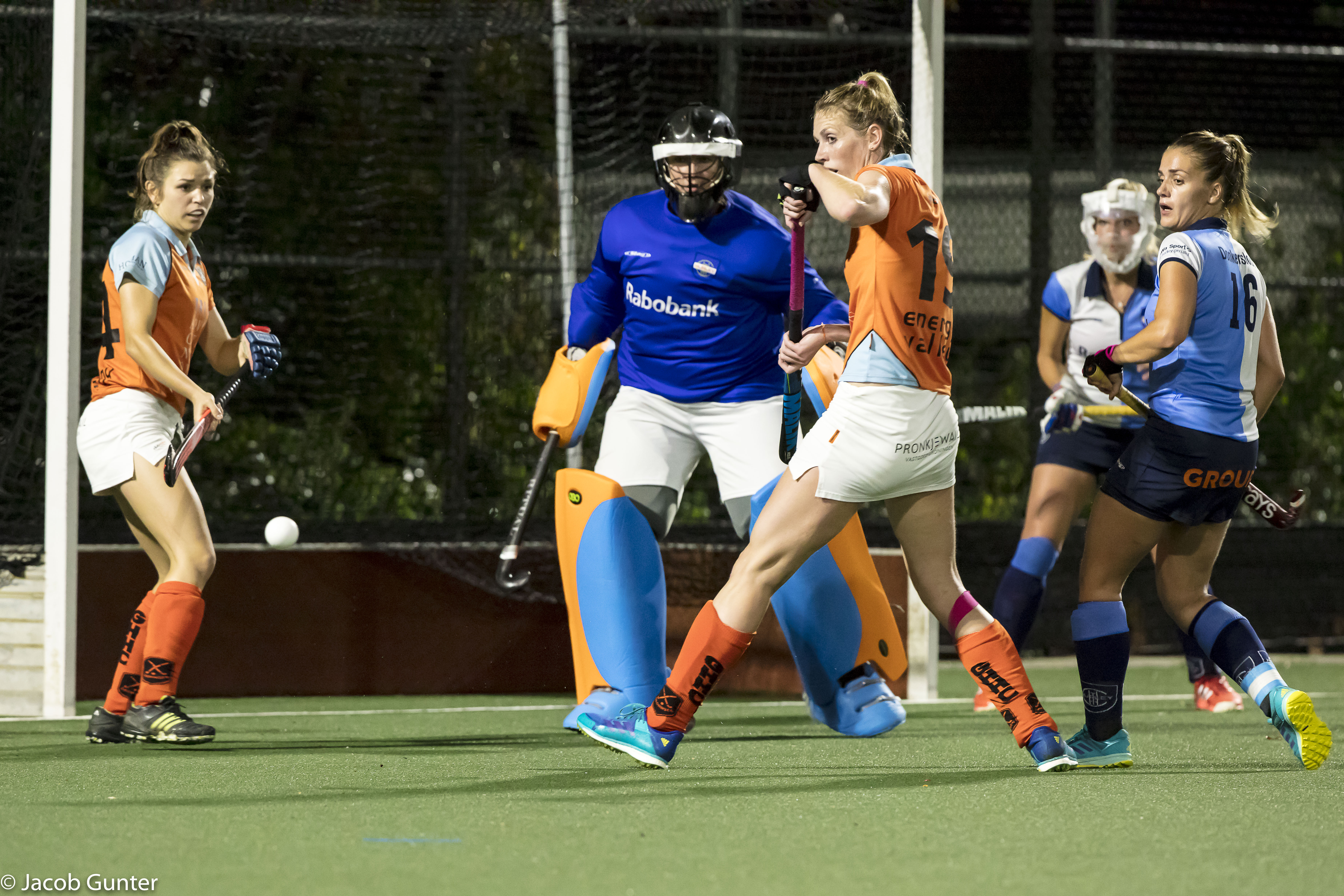Laura van Heugten maakte na de pauze de enige treffer uit een strafcorner. Renske Siersema van Hurley kreeg een rode kaart, maar GHHC kon er niet van profiteren.