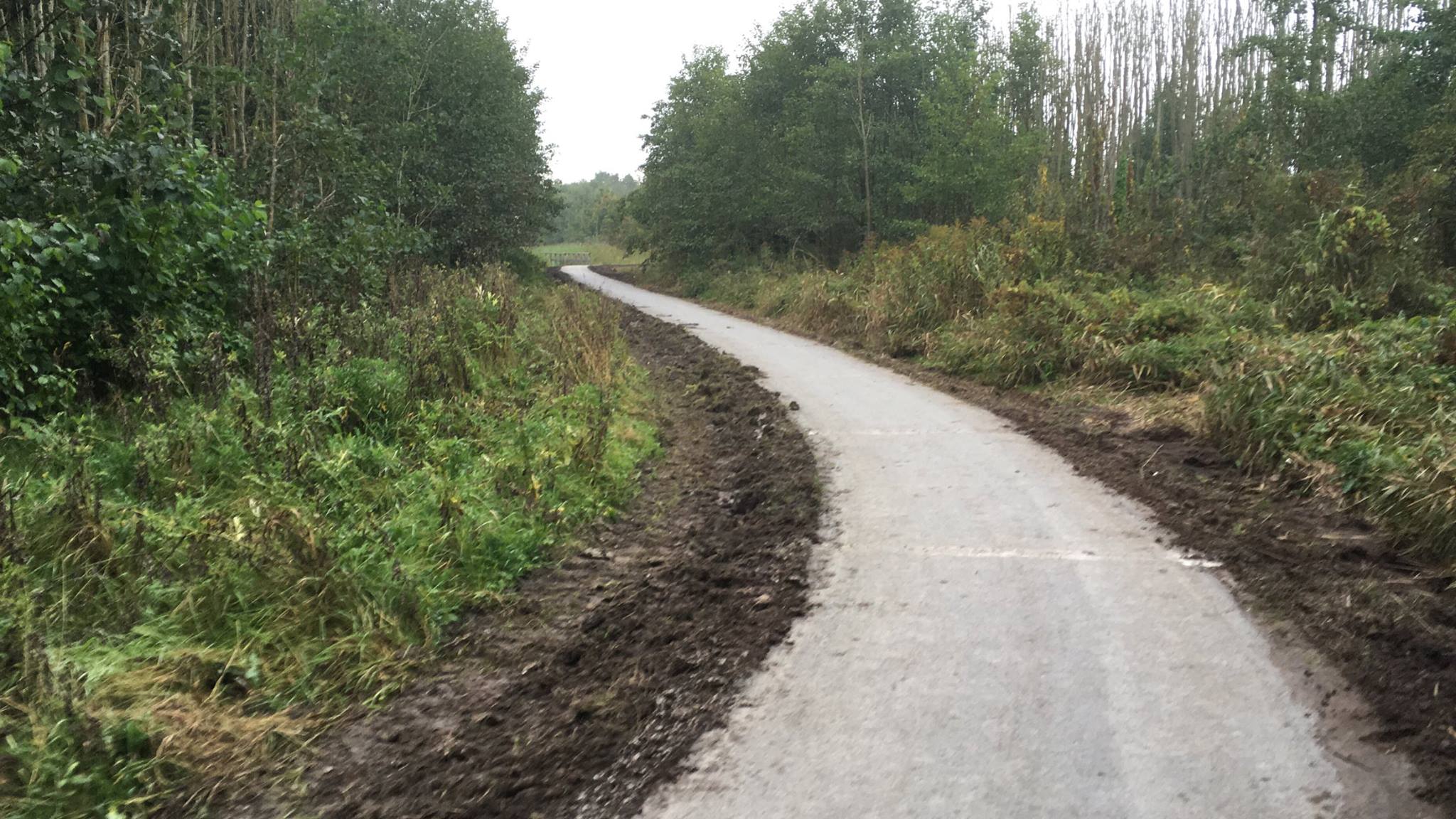 Volgend voorjaar zijn de bermen weer begroeid. Wat nu ‘een snelweg door het bos’ lijkt, is dan weer groen. Het pad wordt financieel mogelijk gemaakt door de Nationale Postcode Loterij.