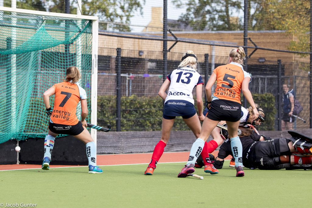 De hockeysters van GHHC hebben zondag na vier nederlagen hun eerste punt behaald tegen het eveneens puntloze Huizen. Daar zag het vijf minuten voor tijd niet naar uit, want toen stond GHHC nog met 3-0 achter.