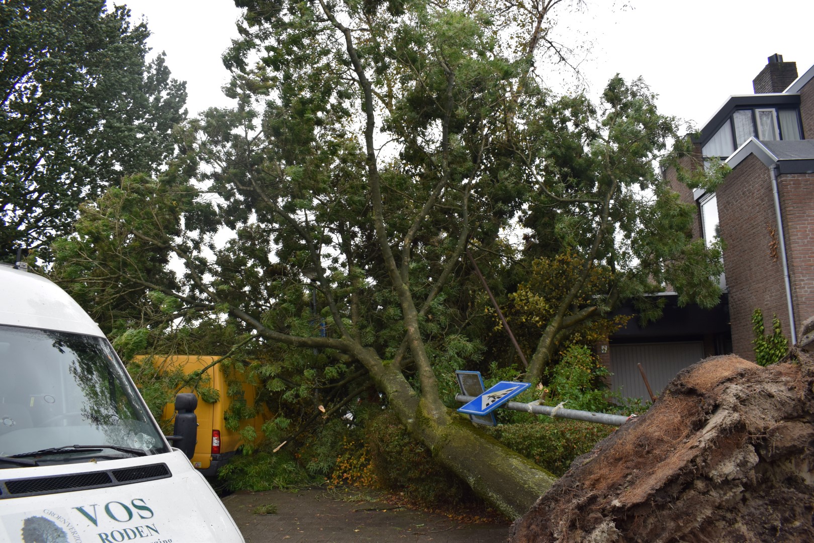 11.50: Er zijn ook diverse meldingen van stormschade in de stad. Zo zijn enkele bomen omgewaaid. Zowel op de Veenweg als op de Bordewijklaan is een boom op een huis gevallen.