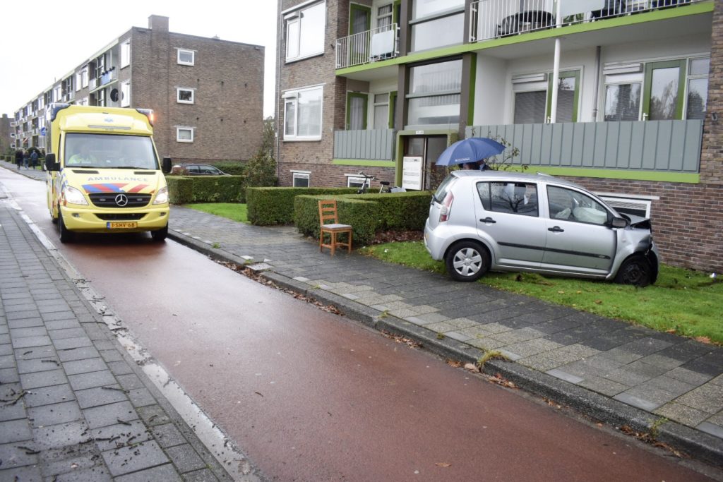 De bestuurster moest met onbekende verwondingen naar het ziekenhuis. De vrouw uit Groningen kwam met de schrik vrij.