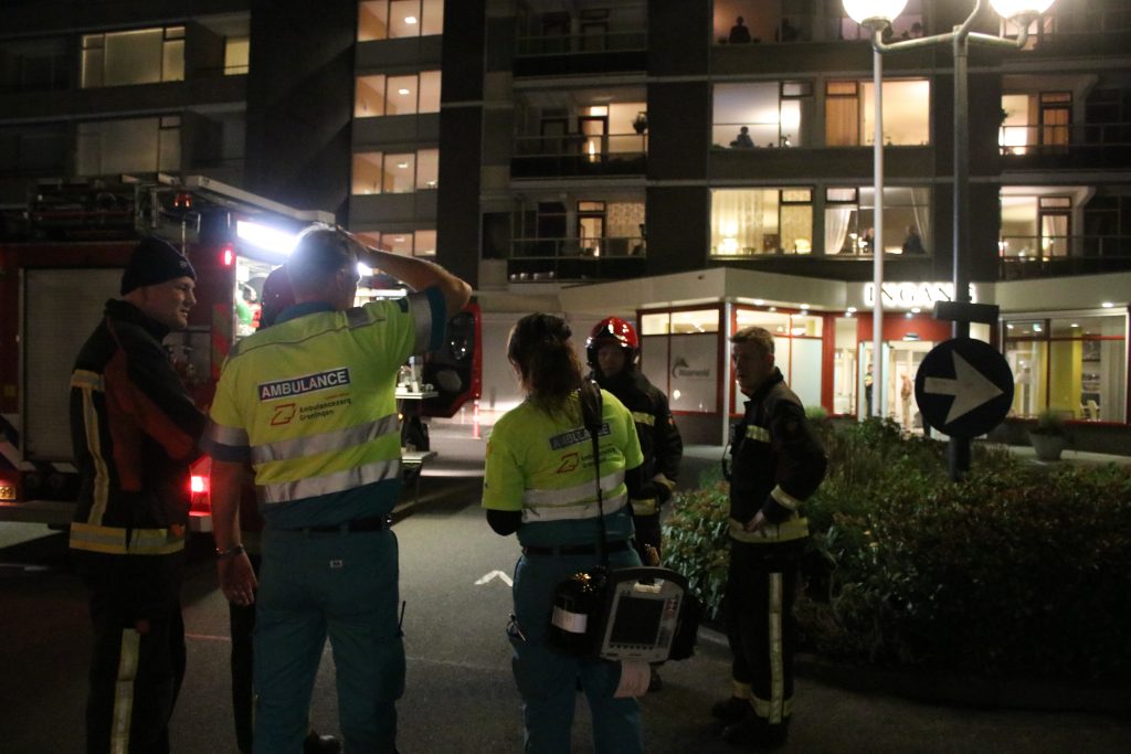 De brand werd rond 22.00 uur ontdekt. Rookmelders op de negende verdieping van de serviceflat constateerden rookontwikkeling waardoor er alarm werd geslagen. Door de meldkamer in Drachten werden direct twee bluswagens en een hoogwerker ter plaatse gestuurd. Bij aankomst bleek het te gaan om een klein brandje dat snel onder controle was. Twee bewoners hadden teveel rook binnengekregen. Zij zijn behandeld door ambulancepersoneel.