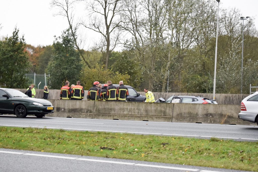 Op de zuidelijke ringweg in de stad Groningen zijn vrijdagmiddag bij het Gasunie-gebouw vier auto’s op elkaar gebotst.
