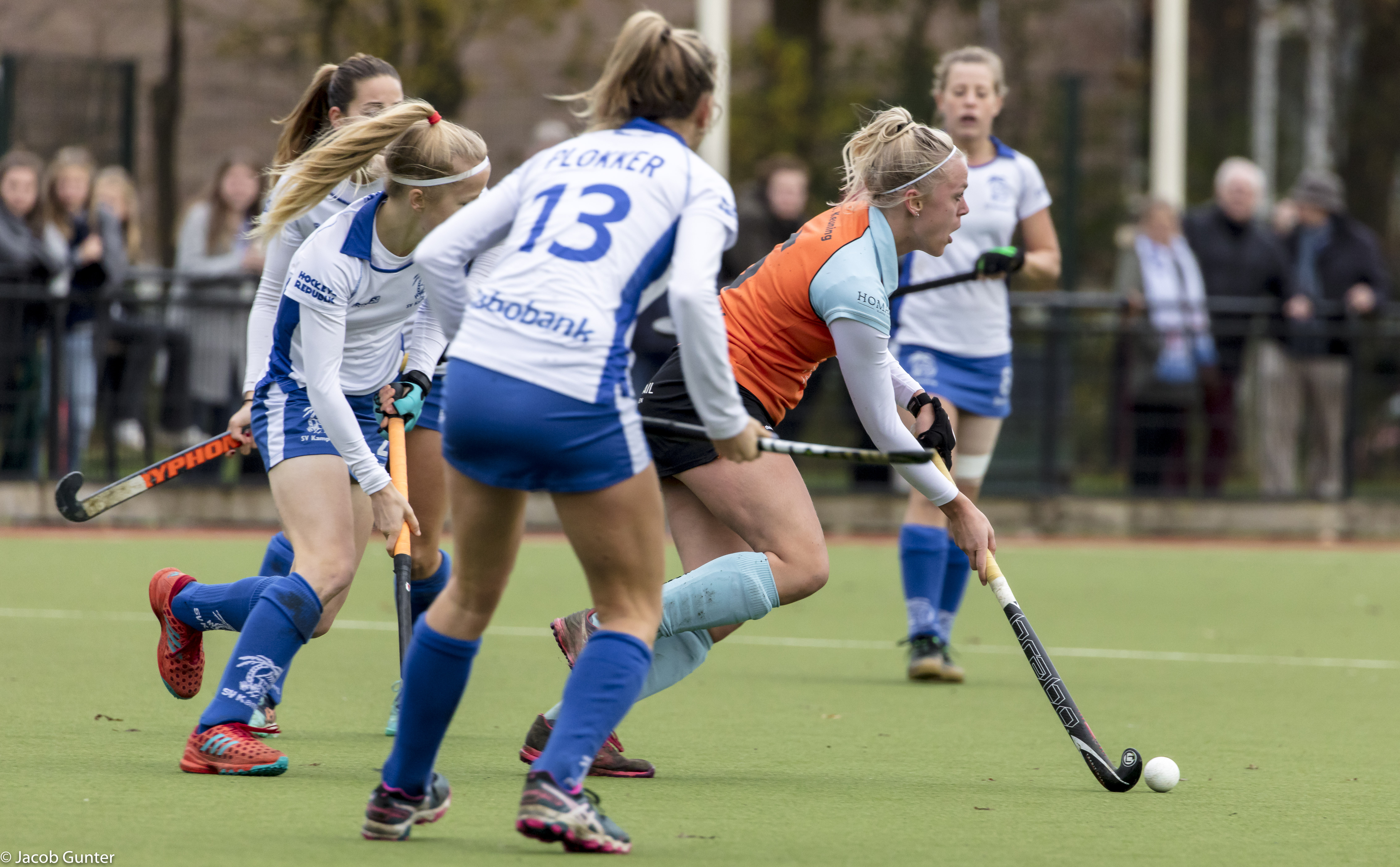 Susan Keuning (GHHC) slalomt met de bal. Foto: Jacob Gunter
