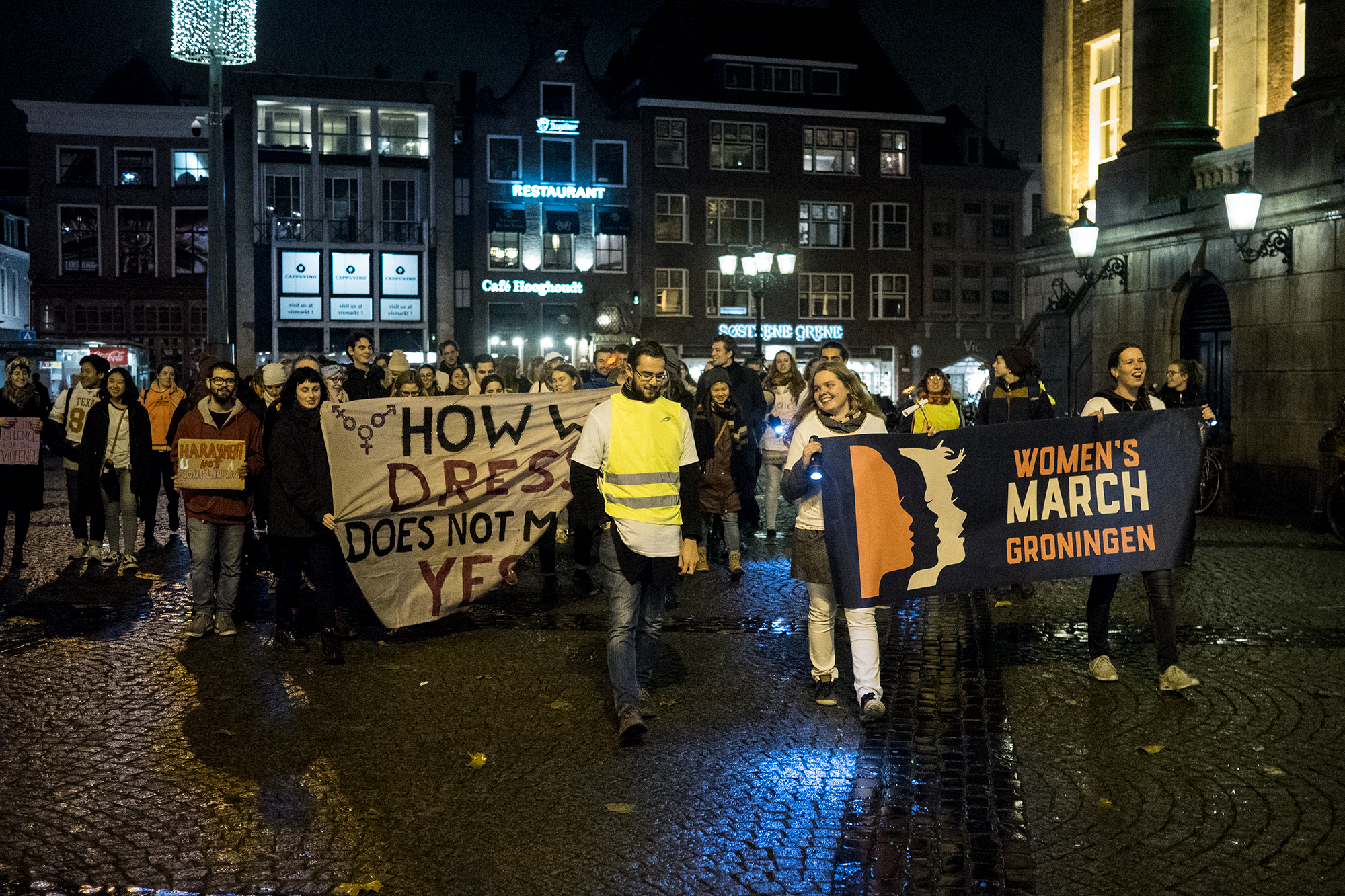 Bij de andere demonstratie en optocht werd aandacht gevraagd voor de veiligheid op straat. Veel mensen voelen zich onveilig door onder meer nafluiten, uitschelden of fysiek geweld. Deze demonstratie was georganiseerd door Women’s March Groningen en Groningen Feminist Network