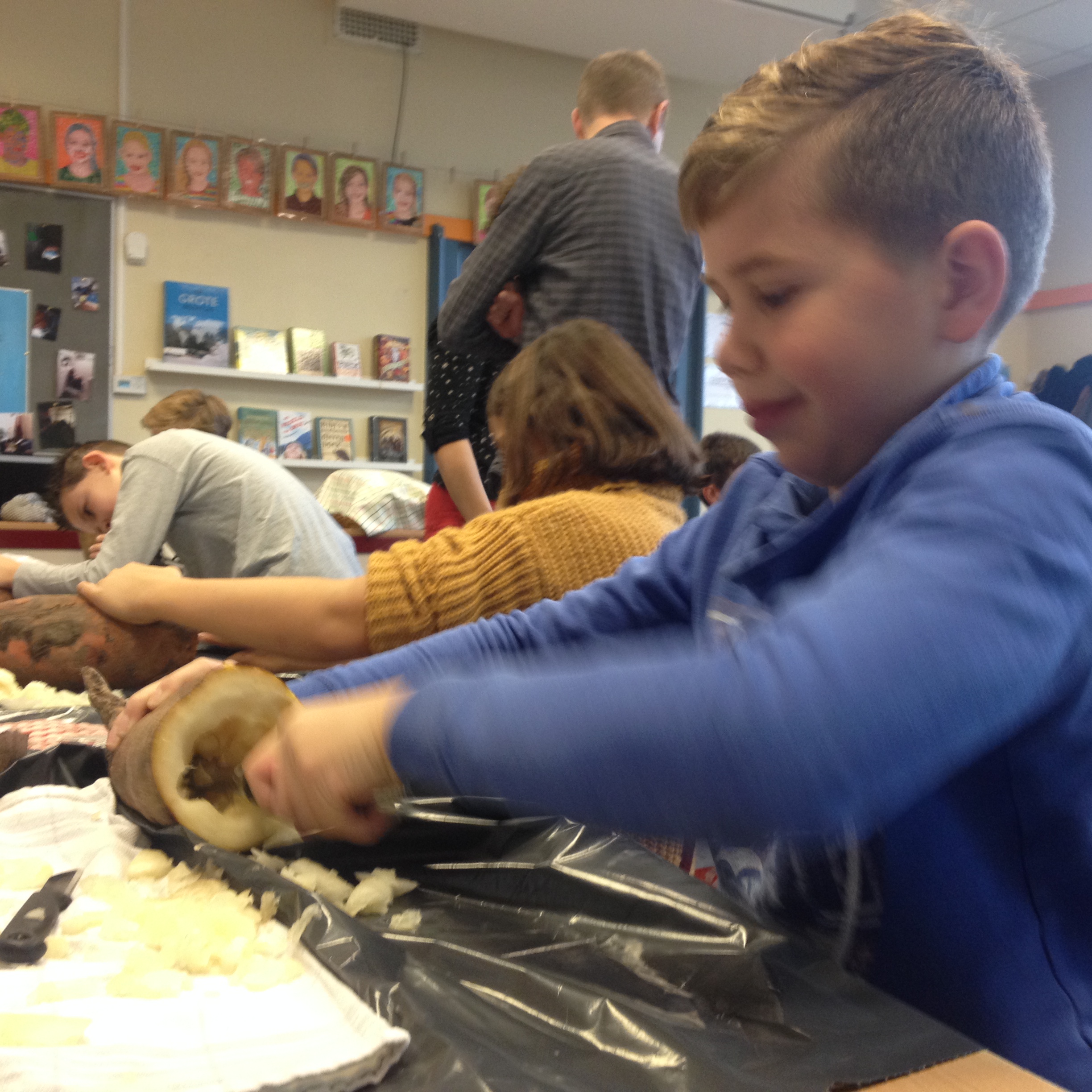 “Ik ben bezig om met een ijslepel de biet uit te hollen”, legt Sam uit. Sam zit in groep 7a van openbare Daltonschool De Starter aan de Parkweg. Vorige week hebben ze van de Koninklijke Vereeniging voor Volksvermaken bieten gekregen en die worden vrijdag omgetoverd tot de mooiste lampions. “We hebben daar bewust mee gewacht”, zegt juf Laura. “Als we direct er mee aan de slag waren gegaan dan waren de lampions uitgedroogd, en kunnen er scheurtjes ontstaan, en dat is wel het laatste wat je wil.”