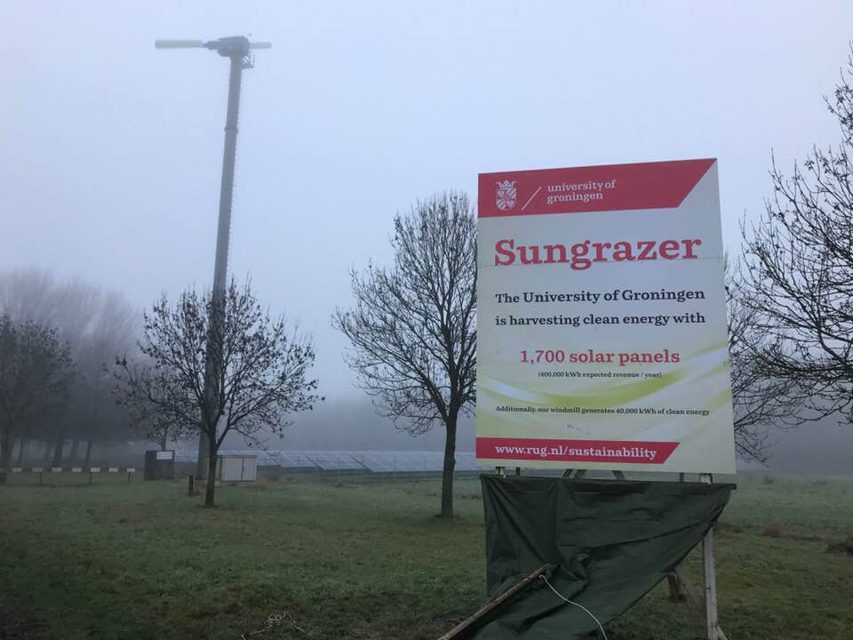 Door middel van een prijsvraag is een naam gekozen voor het veld: ‘Sungrazer’. Geert jan Arends, verbonden aan de RUG, bedacht de naam. “De straat waar het veld aan gevestigd is heet ‘de grazen’, en toen schoot het bij mij op zijn plek. Het bekt ook lekker, vind ik”.
