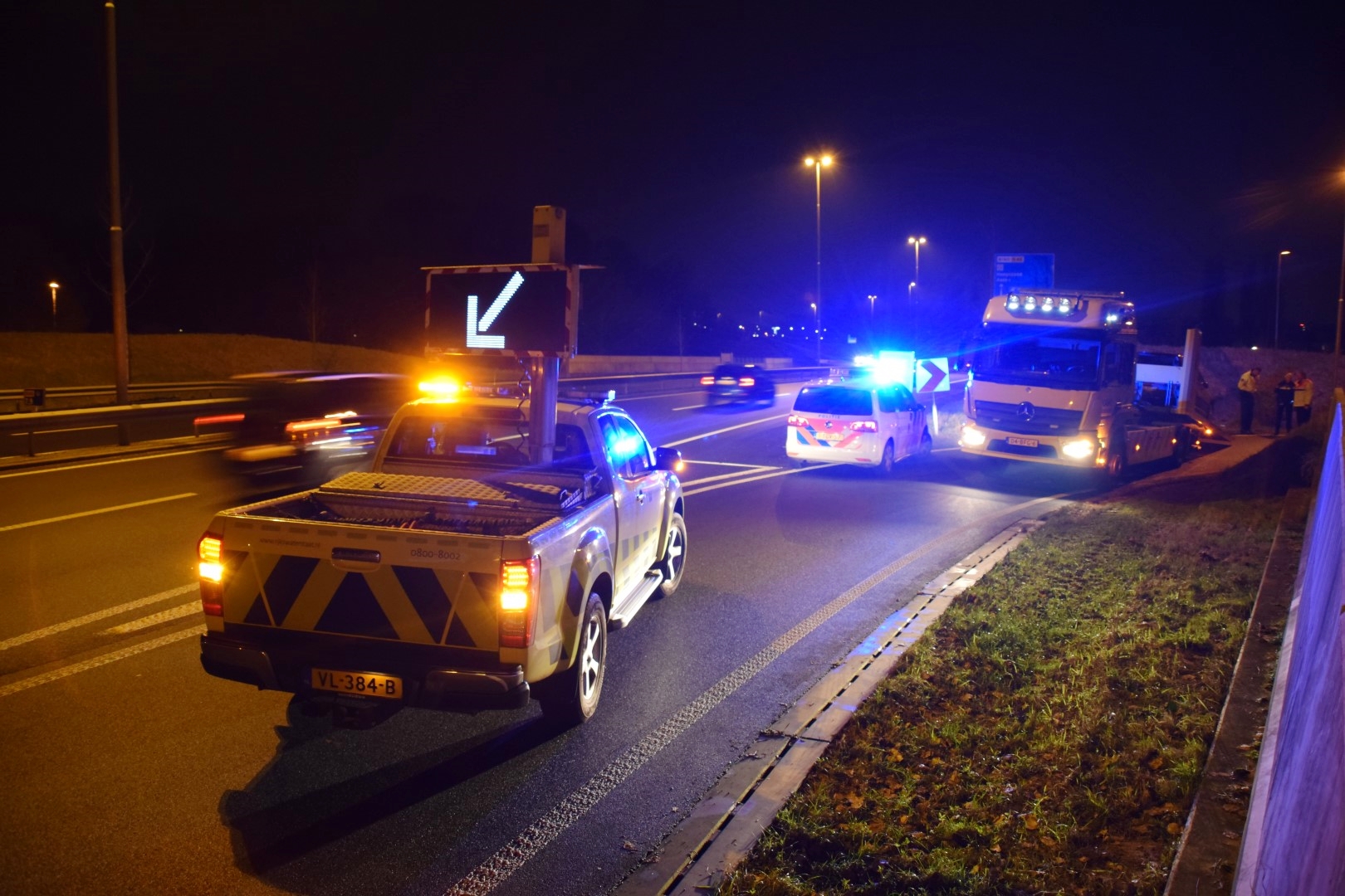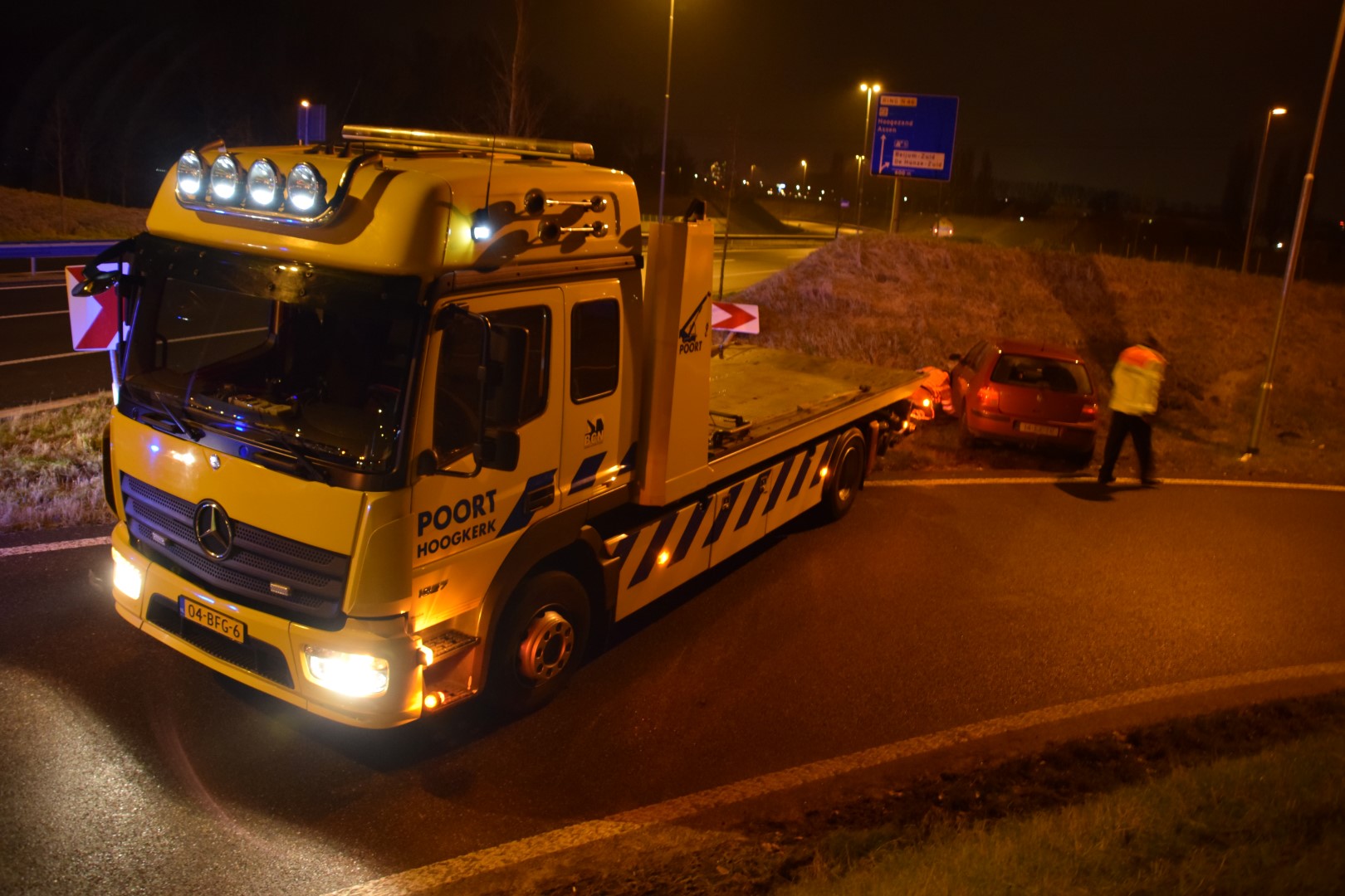 Een bergingsbedrijf heeft de auto weggesleept. Tijdens deze werkzaamheden was de afrit voor het verkeer afgesloten.