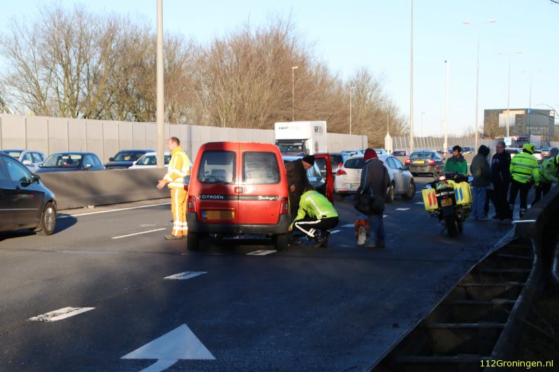 Bij een verkeersongeval zondagmiddag rond 14.30 uur op de zuidelijke ringweg ter hoogte van de Helperzoom is een gewonde gevallen.