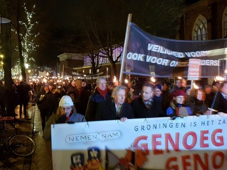 Er liepen naast boze Groningers en sympathisanten ook burgemeesters, bestuurders, mensen van sportclubs, het UMCG en de Rijksuniversiteit mee. Jesse Klaver, fractievoorzitter van GroenLinks was speciaal naar de stad gekomen. “Gisteren waren mensen in de Randstad bang vanwege de zware storm. Dat was één dag. Moet je je eens voorstellen wat de Groningers iedere dag voelen, de angst dat er een zware aardbeving kan komen. Daar moet heel snel iets aan gebeuren. We hebben de middelen daarom moet de regering nu in actie komen”, aldus Klaver die zelf meeliep.