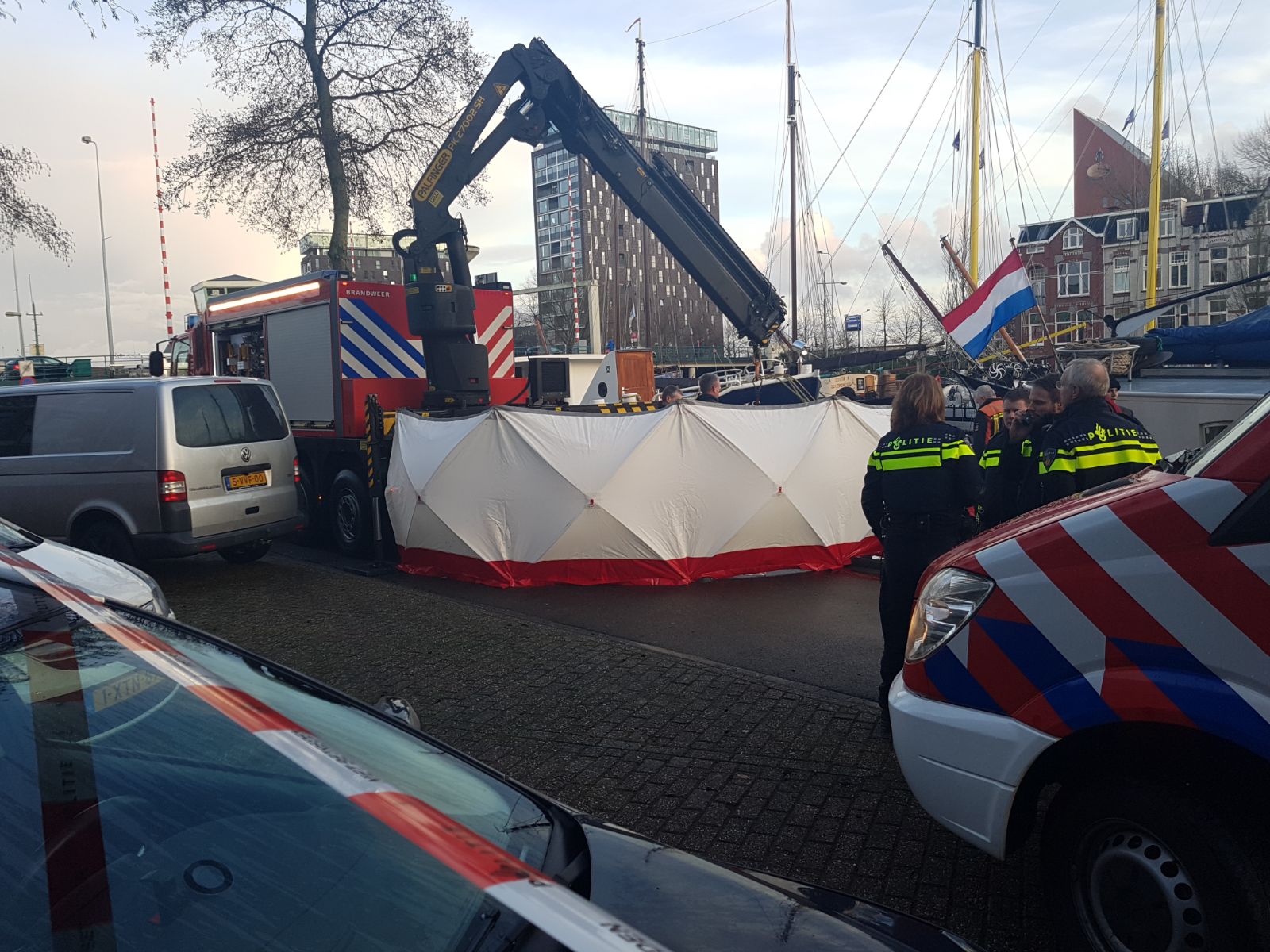 Aan de Oosterkade in de stad is in het water een lichaam aangetroffen. Dat meldt de politie.