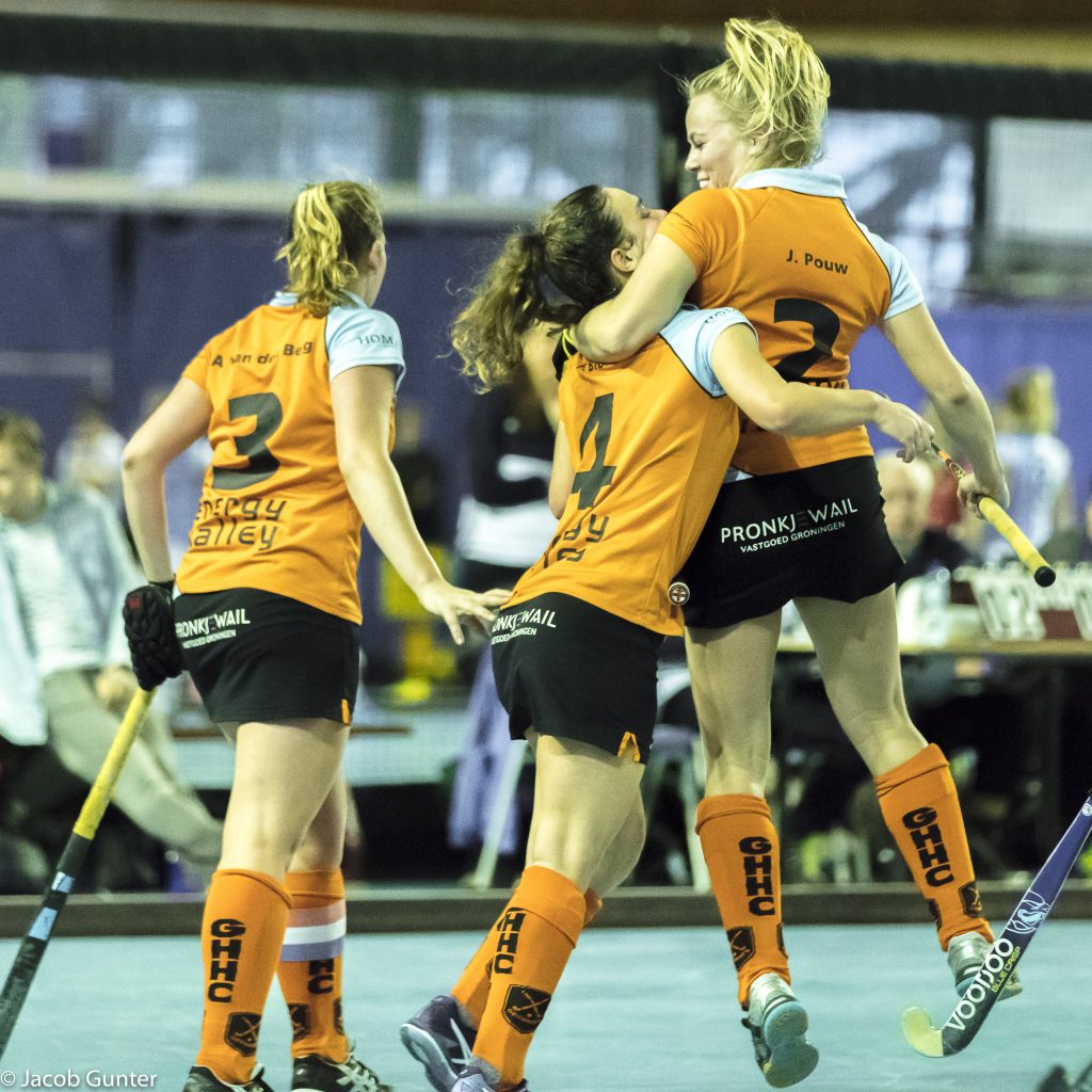 Foto Jacob Gunter. GHHC dames vieren de gelijkmaker tegen Nijmegen.
