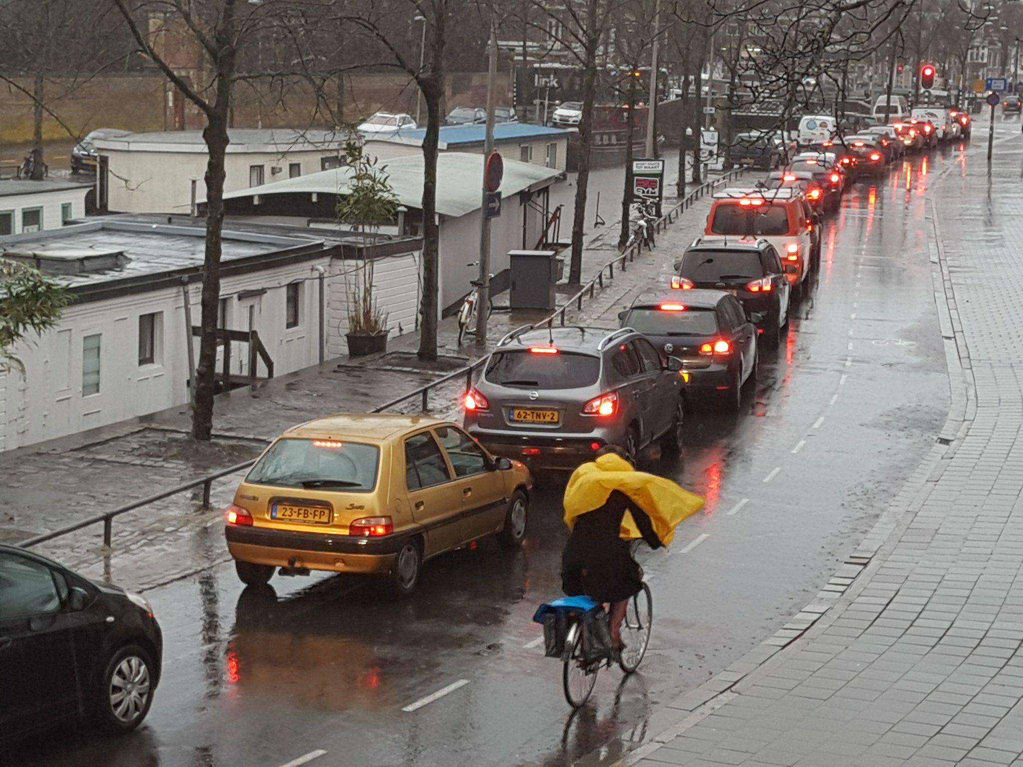 Nu zie je alvast een voorproefje van de ELLENDE, die komt door dit ELLENDIGE "gemeentebestuur" En straks moeten ook de bussen er nog langs en die hebben lange haltes nodig en moeten al de binnenstad passagiers afzetten/meenemen (als die er tenminste nog zijn), wat ook de de nodige tijd kost door die ENE baan! Wat is dit voor een stelletje idioten daar in dat stadhuis (d'66 en sp). Ik hoop van harte, dat die partijen in november worden weggevaagd! En dan een gezond gemeentebestuur, die de STADSTRAM introduceert, die over de GROTE MARKT rijdt!