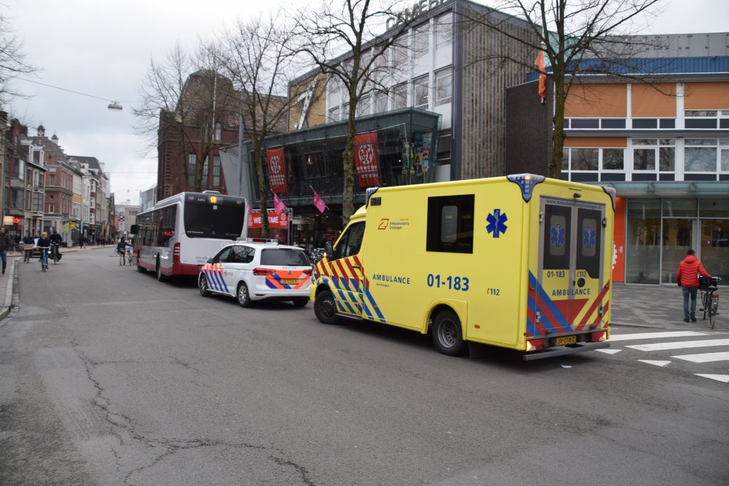 Omstanders hebben eerste hulp verleend totdat de ambulance ter plaatse was. De vrouw bleek alleen een pijnlijke knie te hebben opgelopen.