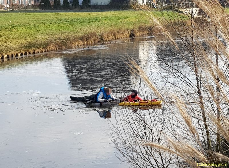 Aan de Langs de Erven in de wijk Meerstad is woensdagmiddag een vrouw door het ijs gezakt toen ze haar kat wilde redden. Het dier lag tussen het ijs in het koude water.