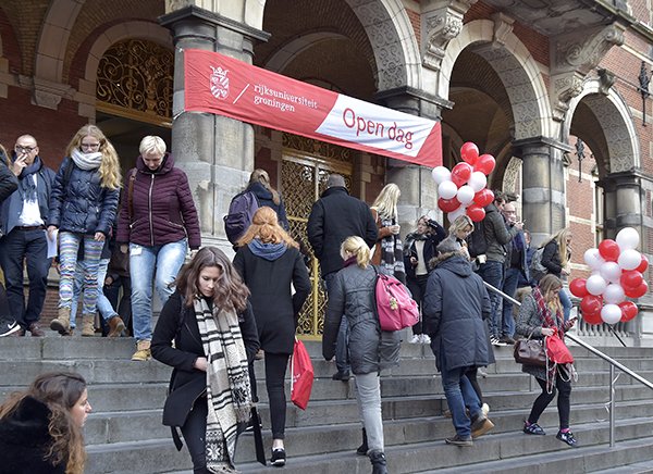 De open dag van de Rijksuniversiteit Groningen heeft vrijdag tienduizend bezoekers getrokken.