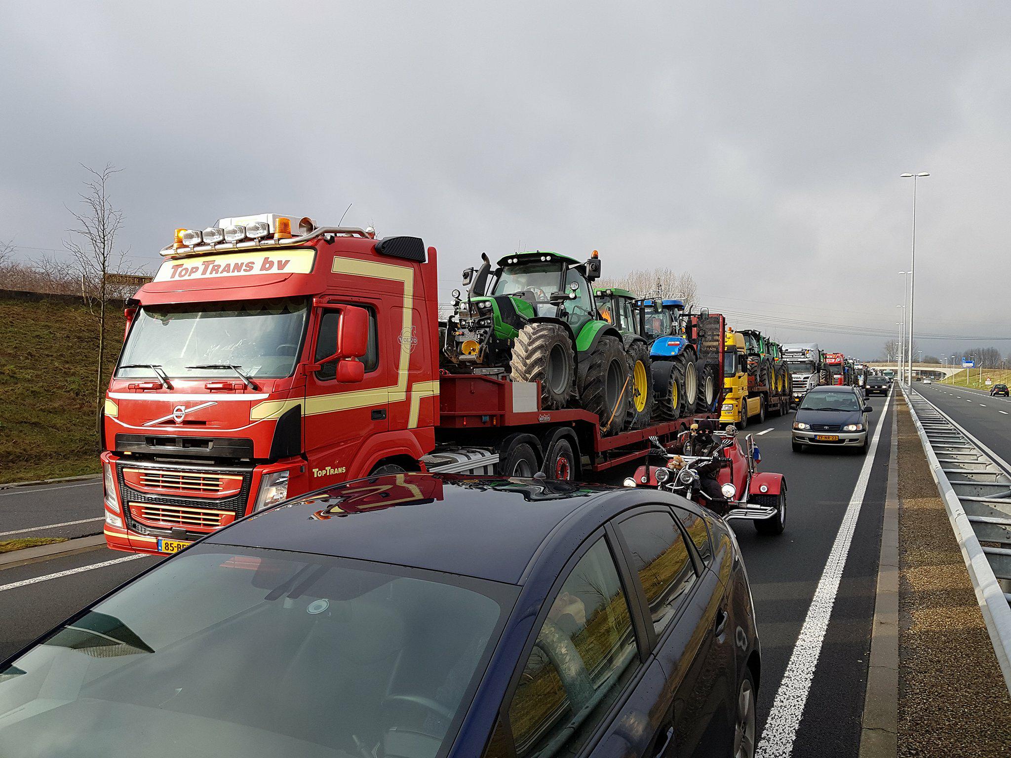 Veertien diepladers met zo’n dertig tractoren en twee bussen vol met boeren en demonstranten vertrokken vanmorgen naar Den Haag. Daar is vandaag een hoorzitting waar de directeuren van Shell, Exxon Mobile en de NAM worden bevraagd door leden van de Tweede Kamer commissie Economische Zaken en Klimaat.