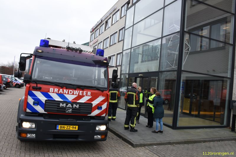 De brandweer rukte vrijdagmiddag uit vanwege een vreemde lucht bij Plas en Bossinade Advocaten aan de Paterswoldseweg in Groningen.