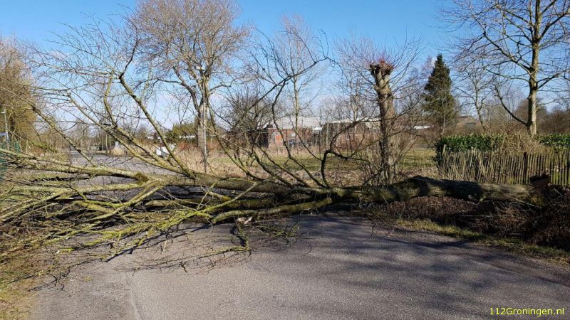 Aan de Noorddijkerweg is zaterdagmorgen door de harde wind een boom omgewaaid. Dat meldt 112groningen.nl.