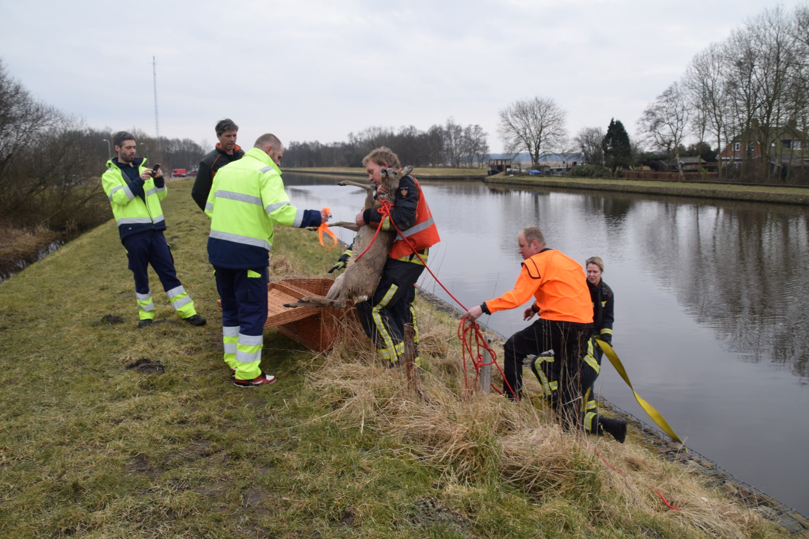 De brandweer van Haren heeft zaterdagmiddag een ree uit het water van het Noord-Willemskanaal gered.