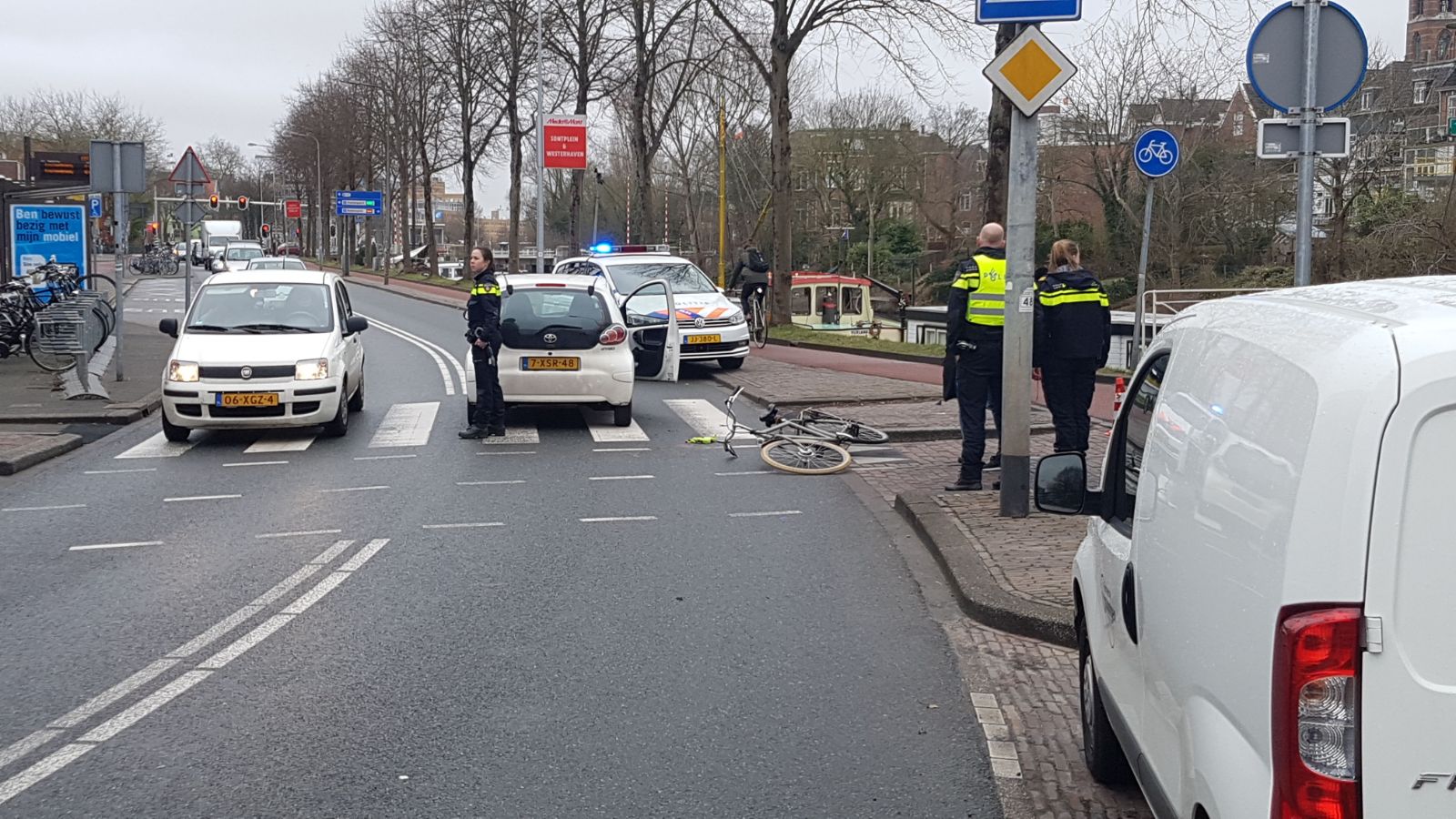 Het ongeluk gebeurde rond 10.00 uur. De fietser wilde ter hoogte van de Trompbrug de weg oversteken, maar zag daarbij een automobilist over het hoofd, waardoor een aanrijding het gevolg was.
