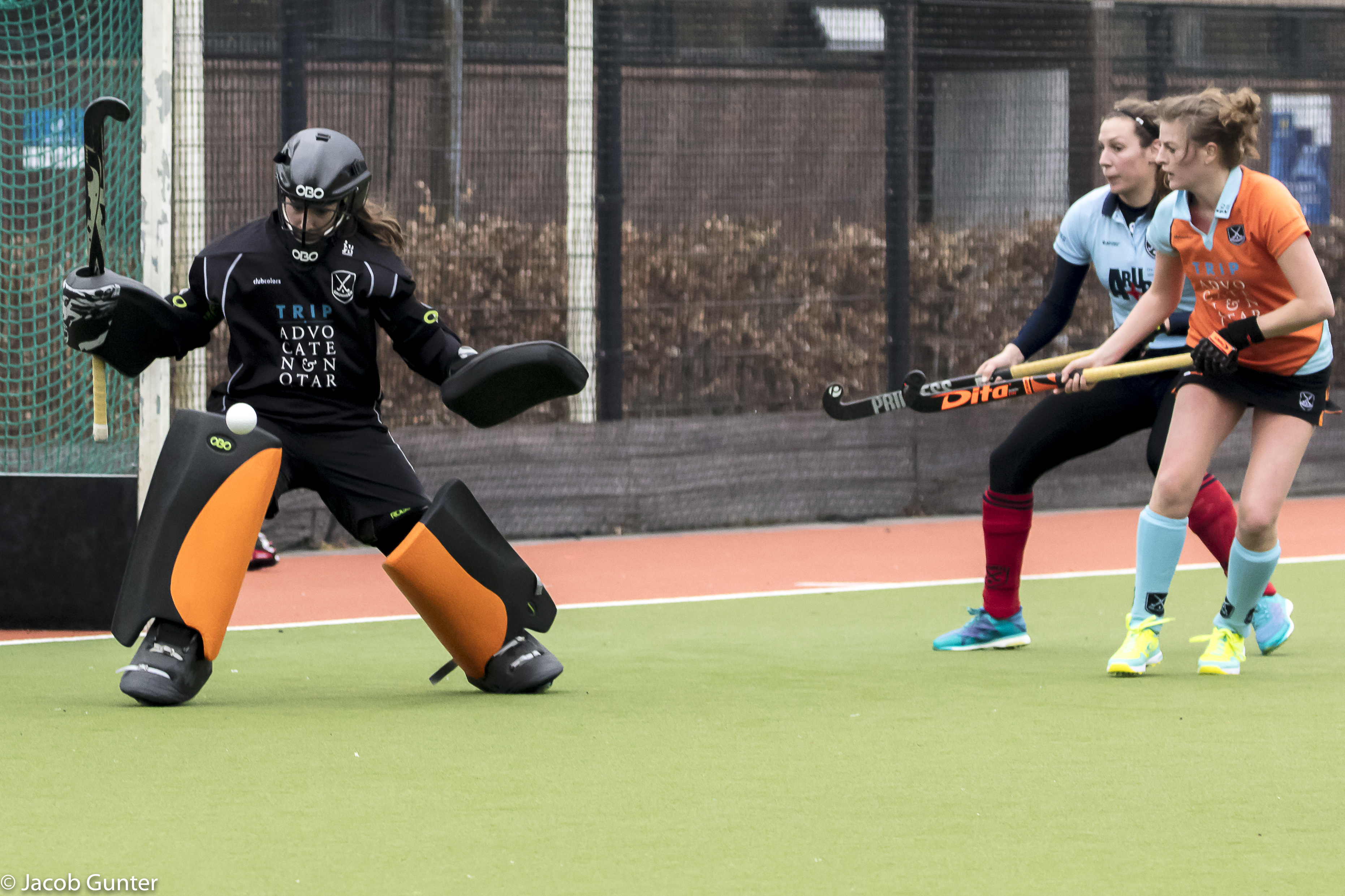 Keepster Jantien Gunter (GHHC) stopt een schot. Foto: Jacob Gunter