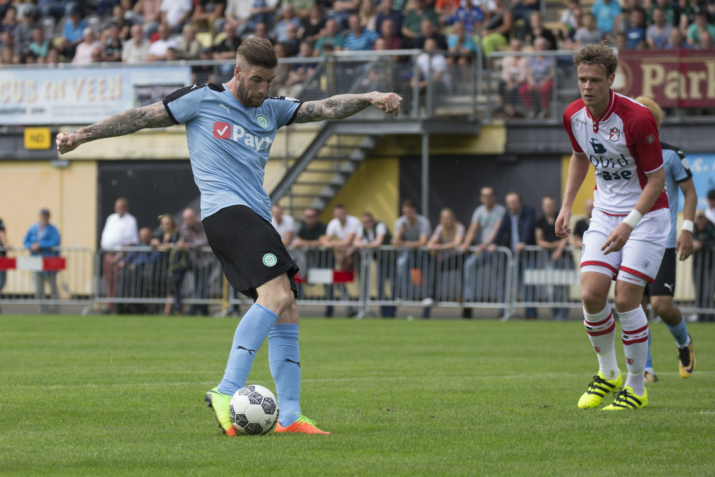 Foto: Sportphotoagency.com Lars Veldwijk van FC Groningen gaat scoren tegen FC Emmen.