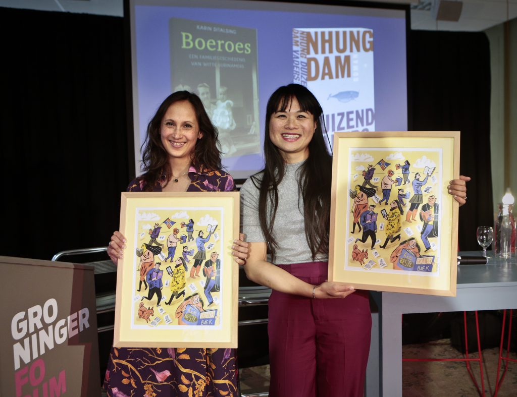 De schrijfsters Nhung Dam en Karin Sitalsing hebben de prijs gewonnen voor het beste Groningse boek. Dat werd zondag bekendgemaakt in de bibliotheek aan de Oude Boteringestraat.