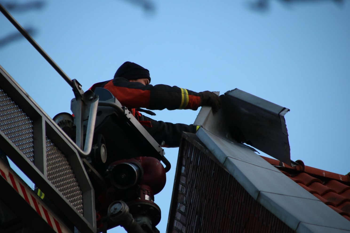 De melding kwam rond 17.55 uur binnen bij de brandweer. Het daklood zat nog gedeeltelijk vast, maar omdat het om een onveilige situatie ging werd een hoogwerker van de brandweer ingezet om het stuk dak te verwijderen.