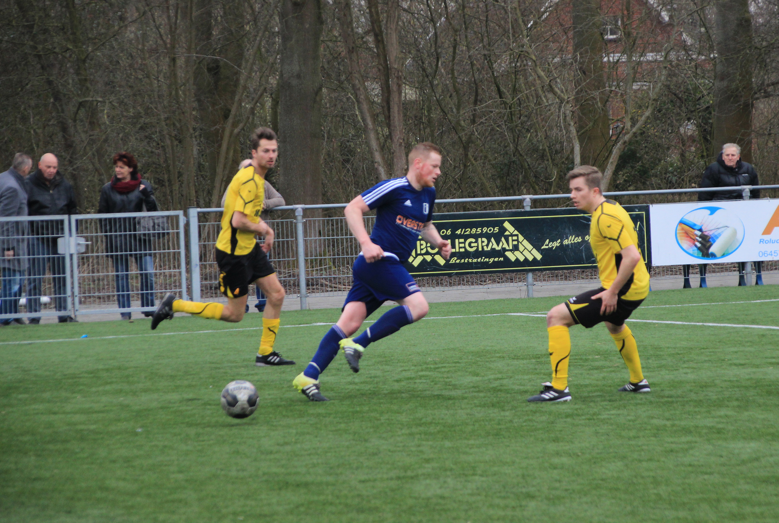 Foto Andor Heij: VVG - VEV'67. Tim van der Molen (midden) scoorde vijf keer voor VV Groningen.