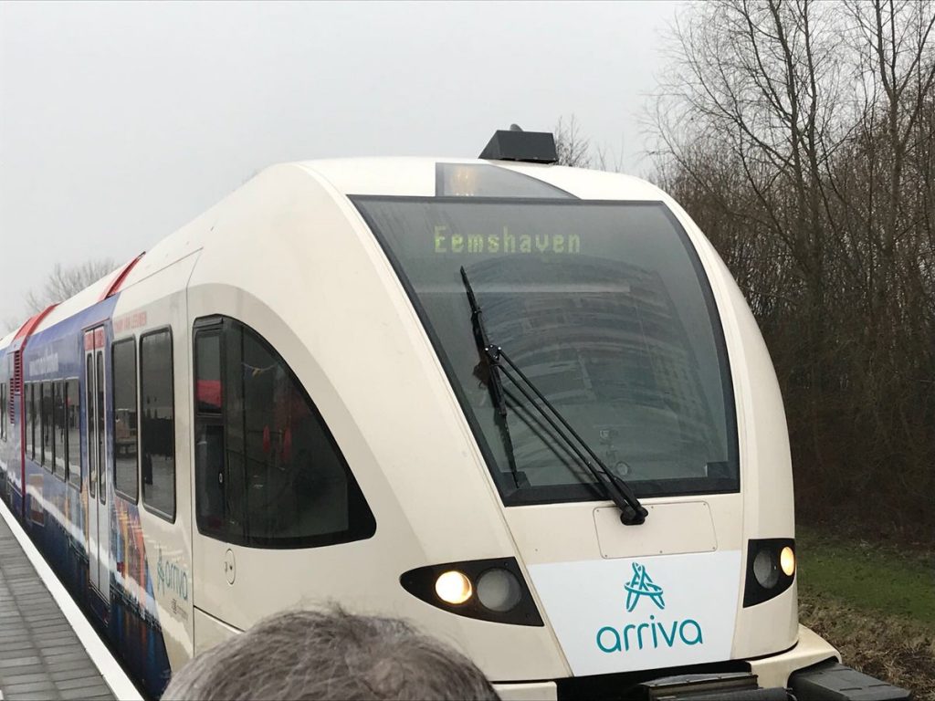 De Arriva trein vanuit Groningen naar het nieuwe station Eemshaven rijdt vanaf deze woensdag.