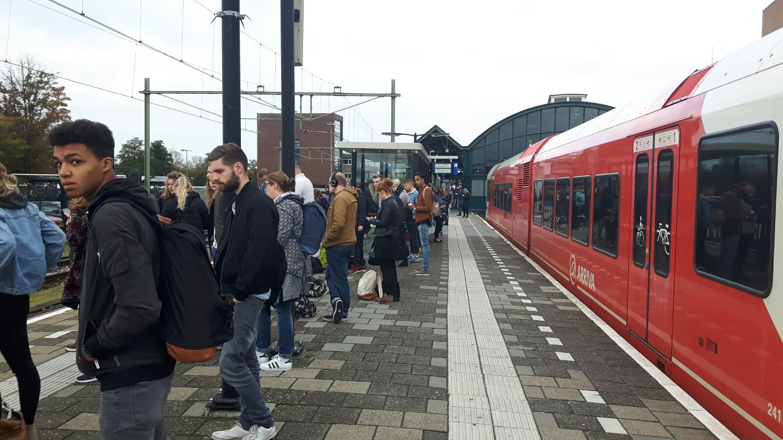 Foto Lars de Leeuw. Wachtende reizigers in Leeuwarden.